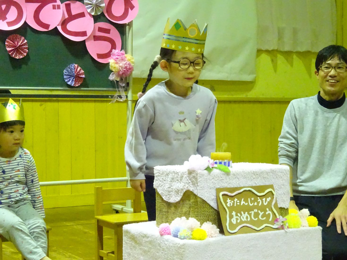 保護者の方をお招きして、12月の誕生日の友達をお祝いしました。司会は年長児、落ち着いた進行で上手に進めてくれました。