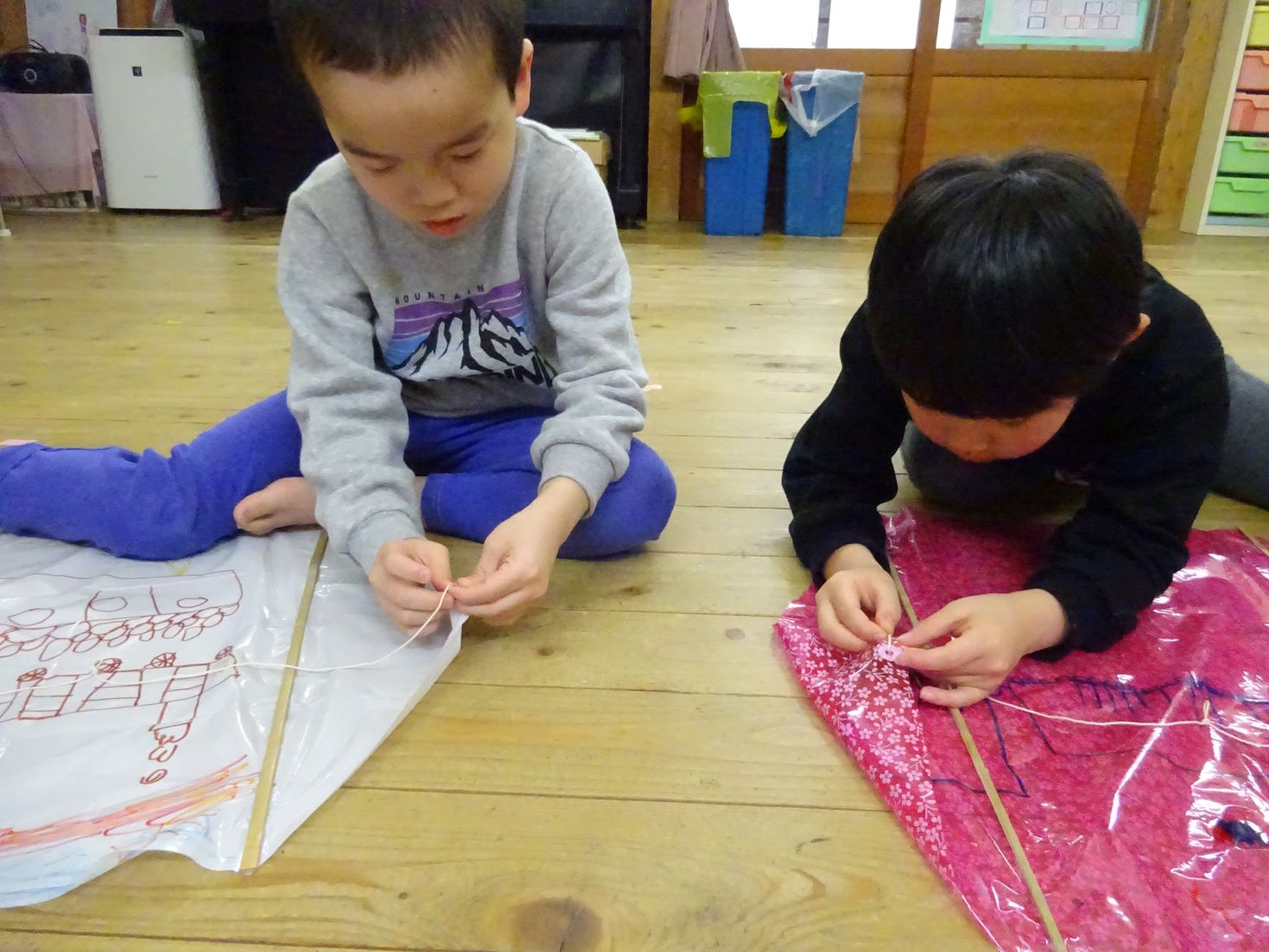 凧作りをしたよ、凧あげをしたよ!(にじそら組)