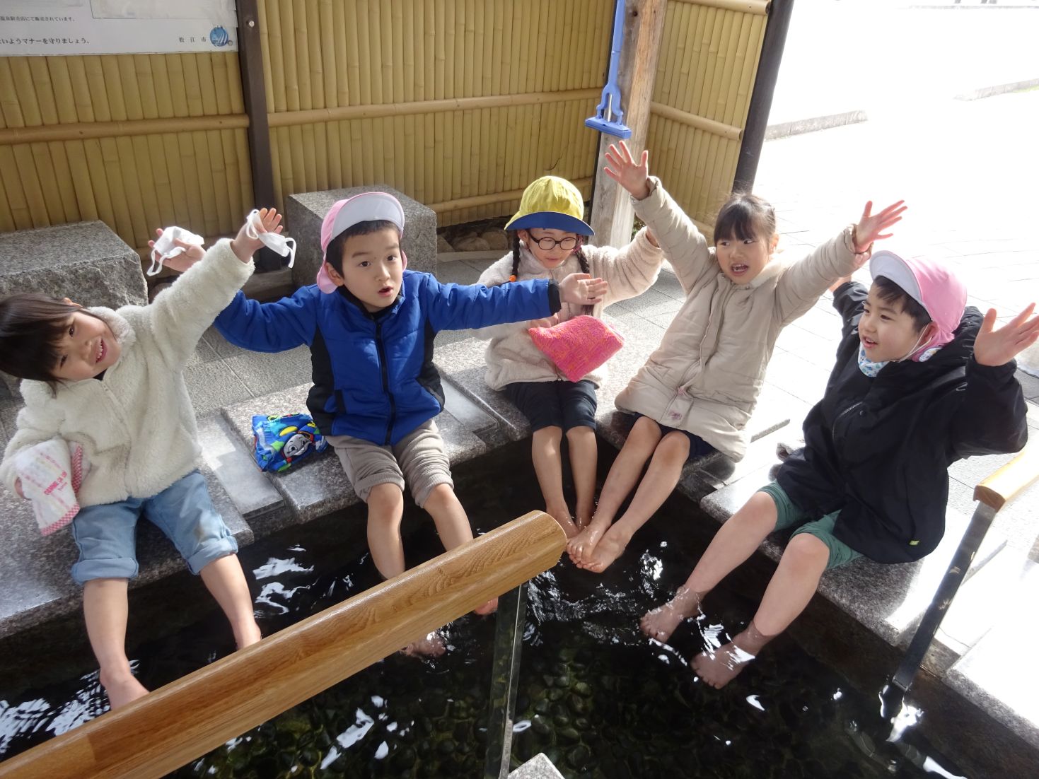 帰りは、宍道湖温泉駅の足湯に入って、しばしの休憩…「あしが あかくなったよ」「あしが かるくなった!」と、満喫していました。