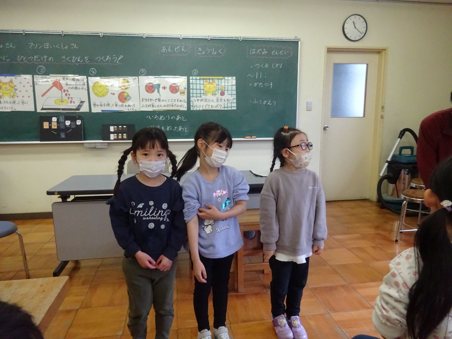 出来た皮を布で磨いて仕上げました。その後、感想発表をしました。