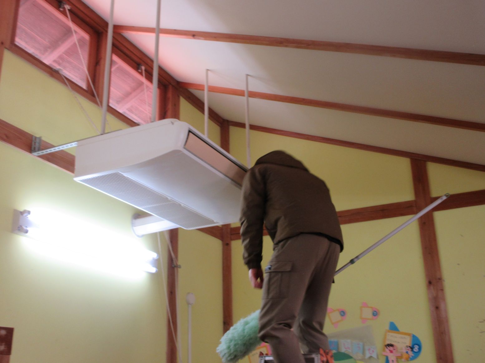 脚立に上り、エアコンのホコリを取ってくださいました