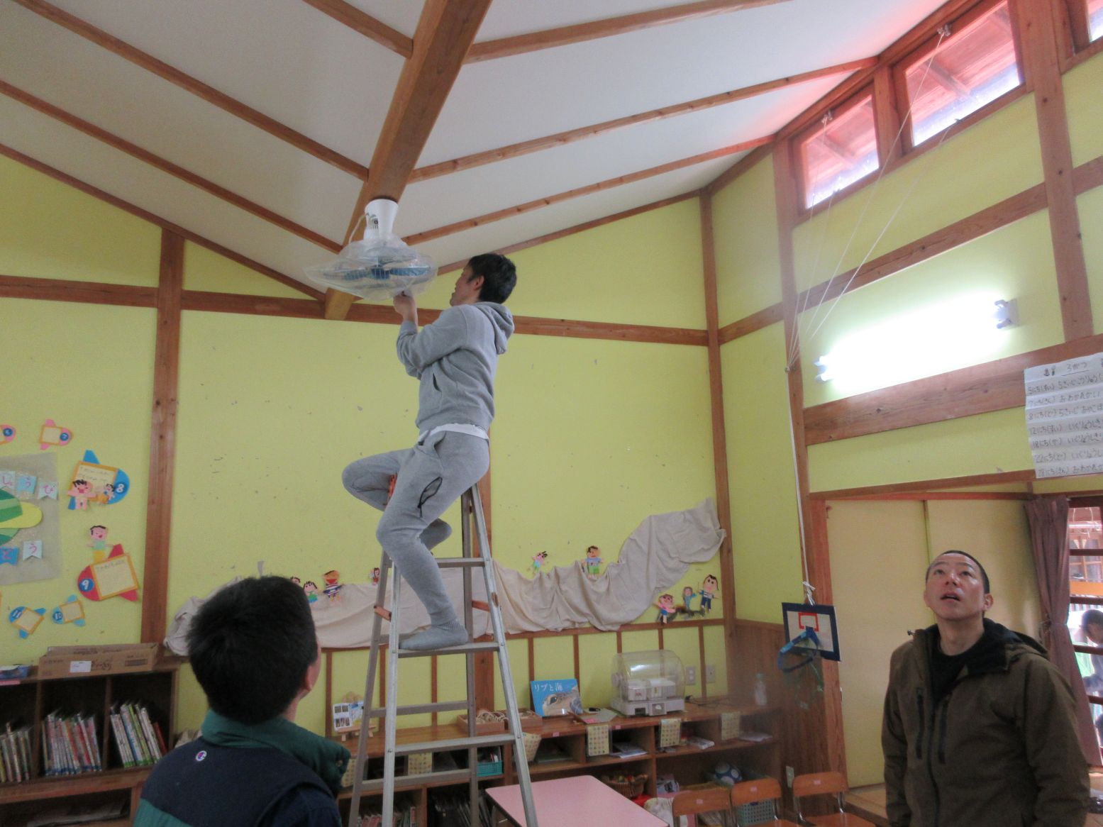 高い所は、お父さん方にお世話になりました