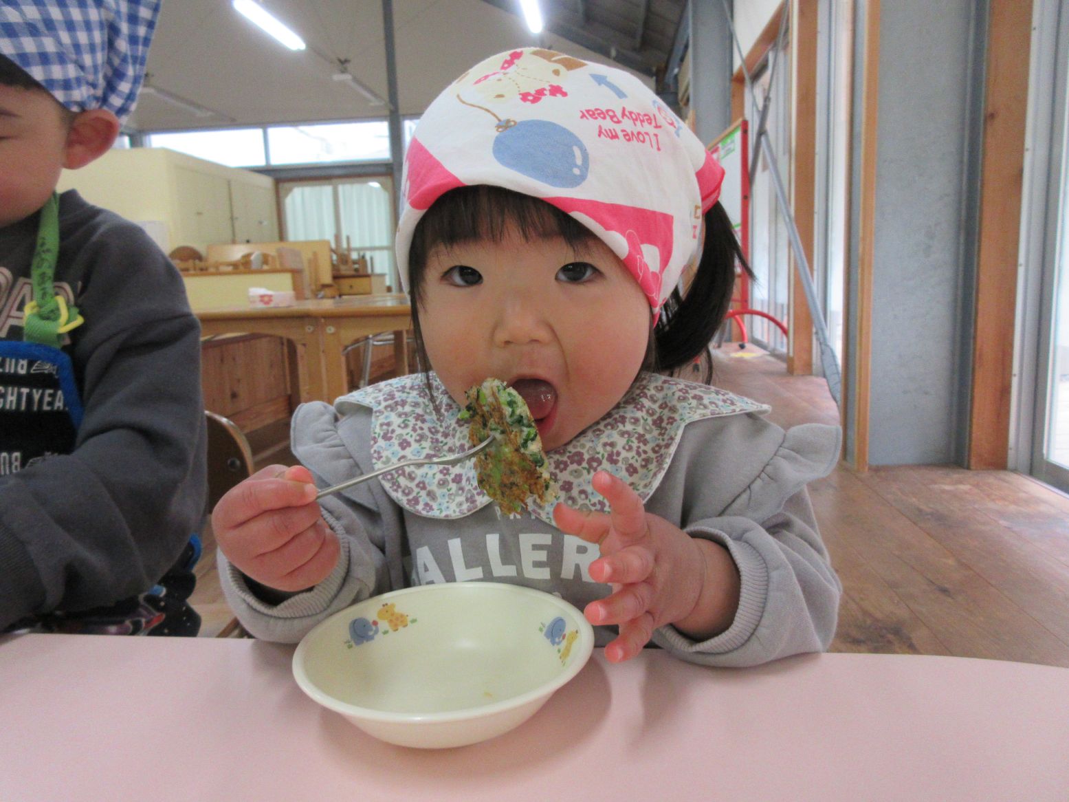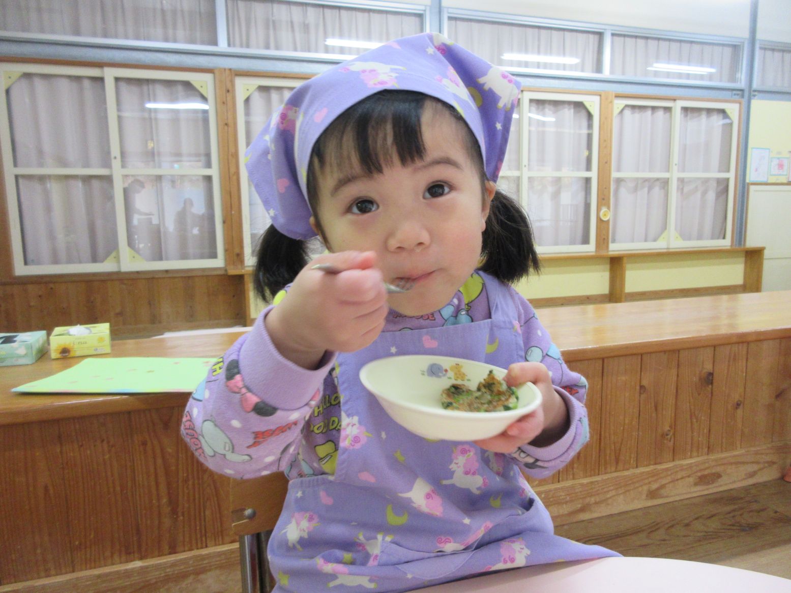 出来上がった〝大根もち〟は「おいしー」「おかわりある?」と大好評でした。