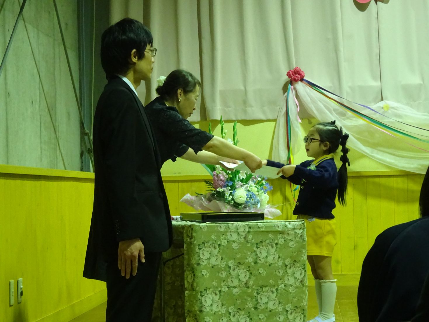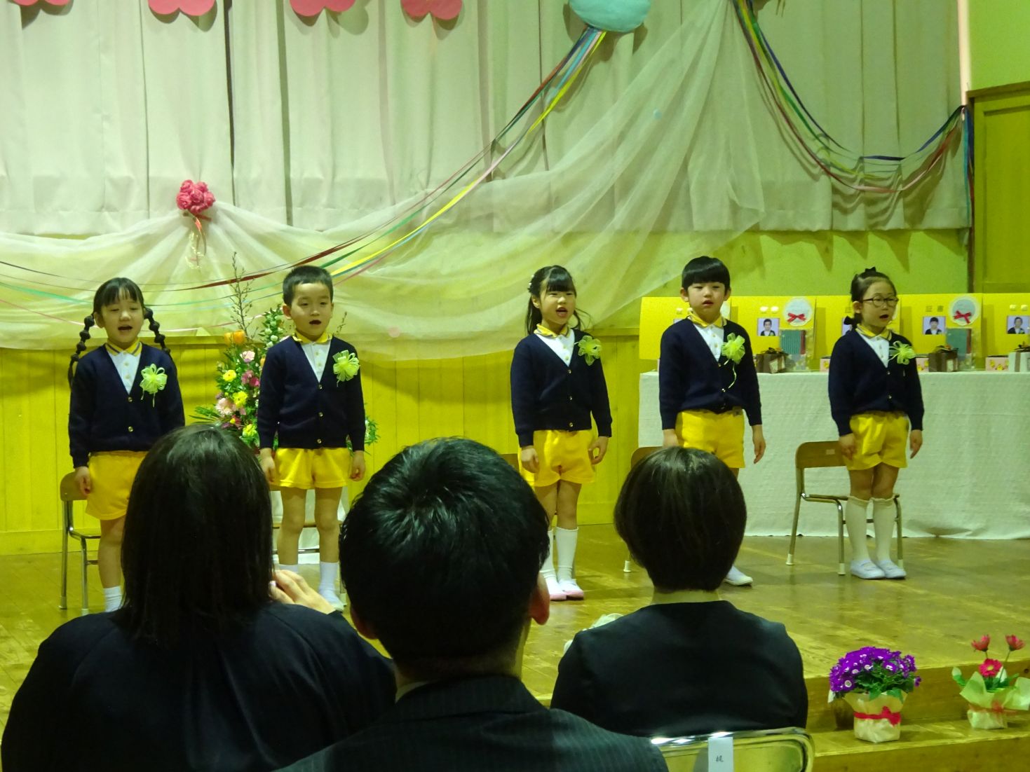 しっかりとした足取りで入場したこども達は、緊張と嬉しい笑顔の両方を見せながら、育了証書を頂いたり、思い出の歌と言葉を言ったりしました。