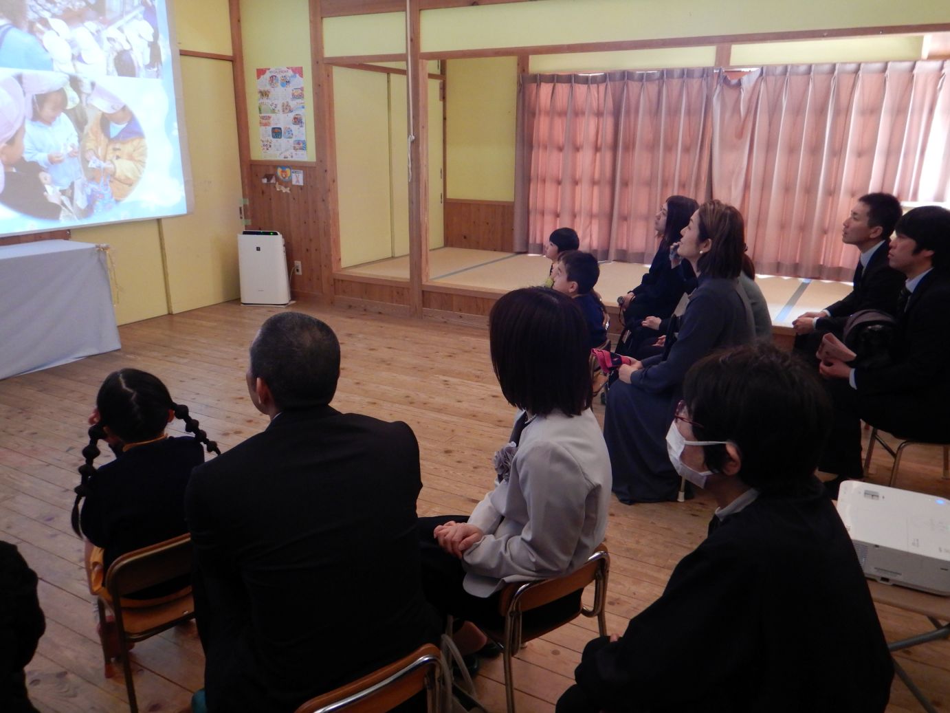 スライドショーで、保育所生活を振り返りました。始終和やかな雰囲気でした