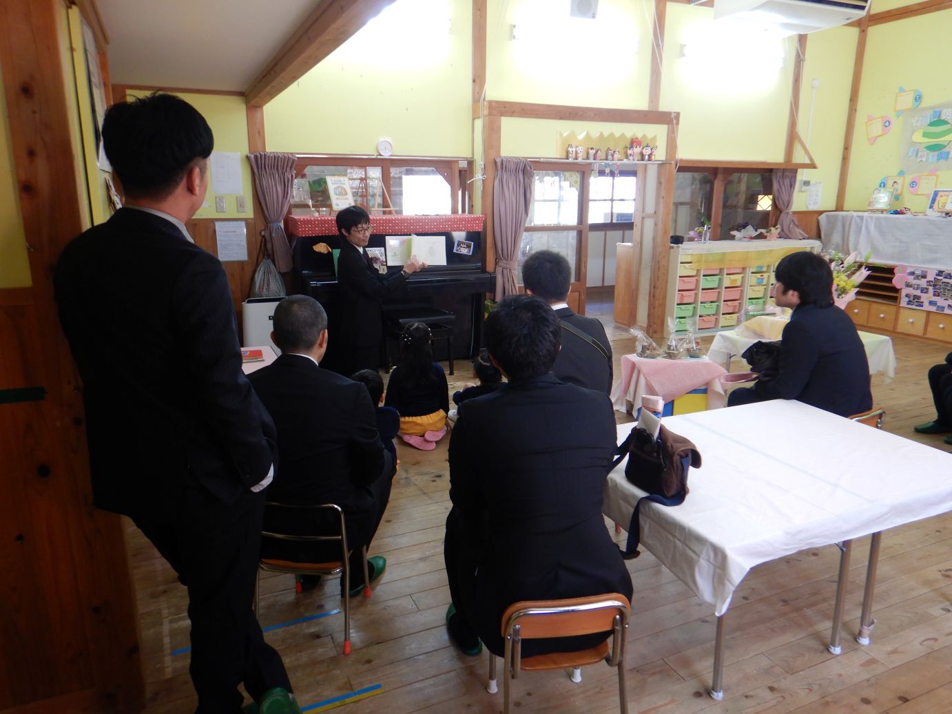 所長先生から子ども達の保育所生活を振り返ってのお祝いの言葉に、うんうんと頷いたり、えっ?と驚いたりしていました。