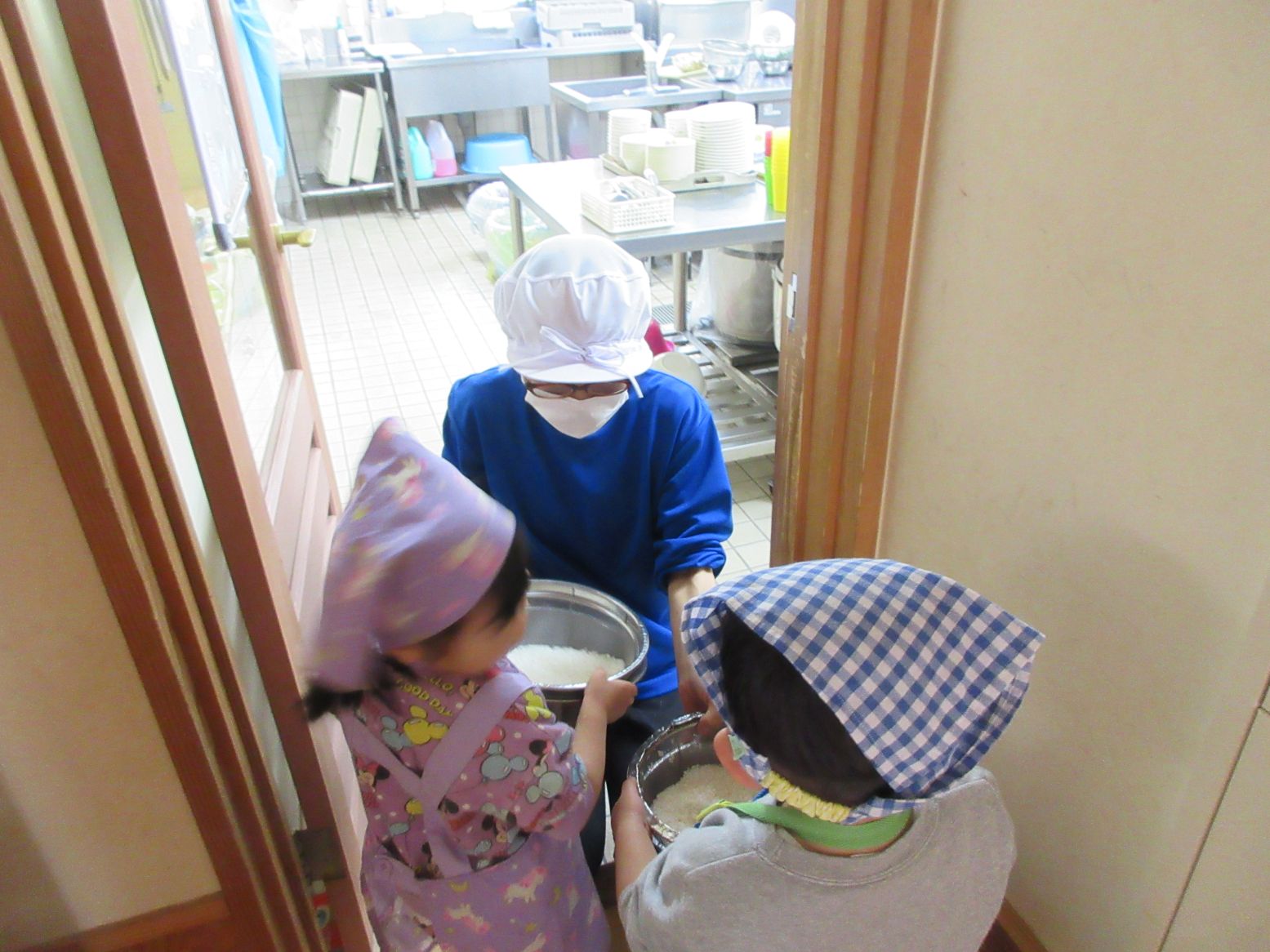 「おこめをとぎました」「おねがいします」