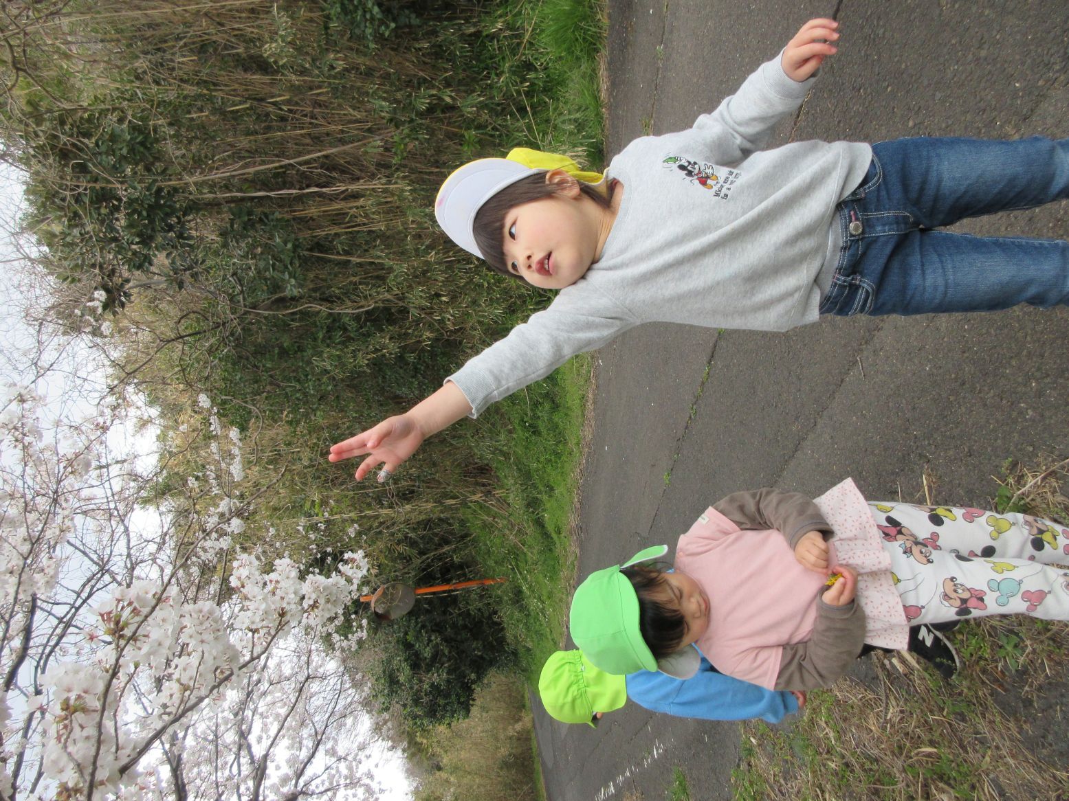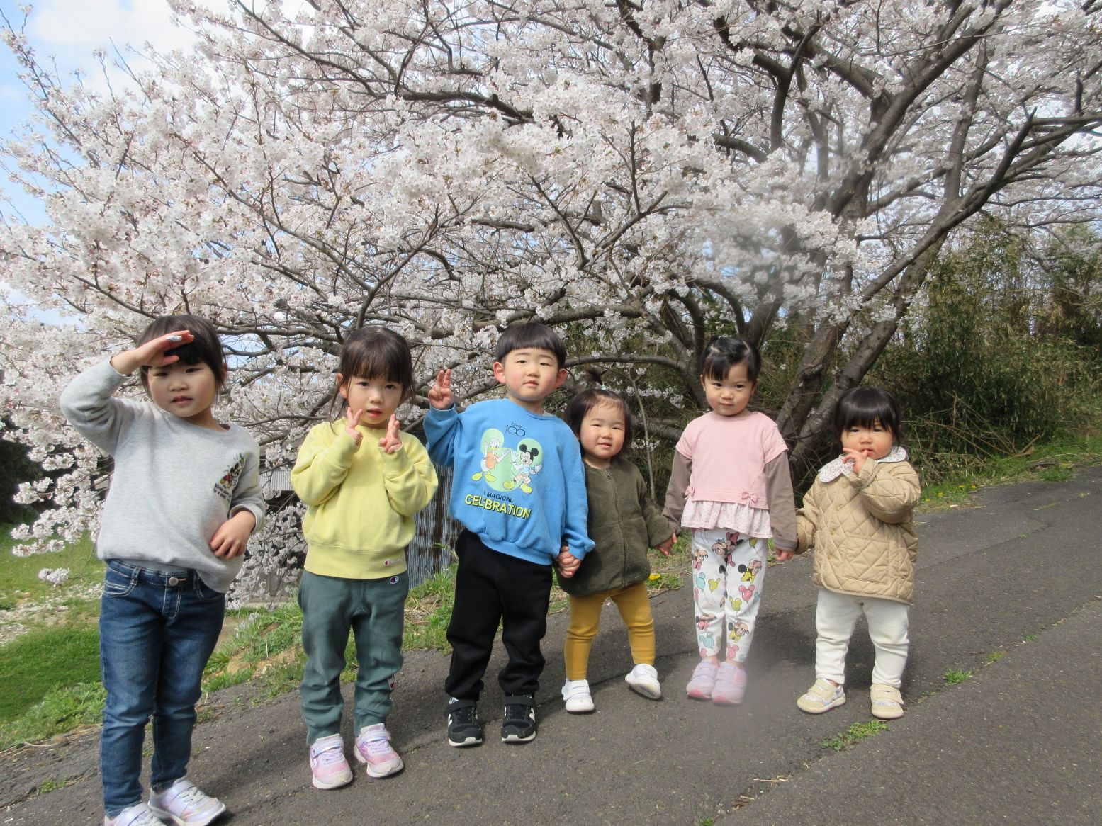 今日は全員で、官公アパレル近くの大きな桜の木を見に出掛けました。桜は満開で、こども達は指をさしながら桜の花びらを見ていました。