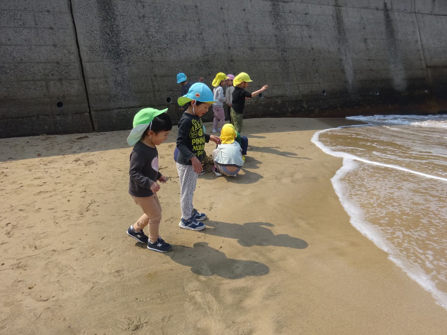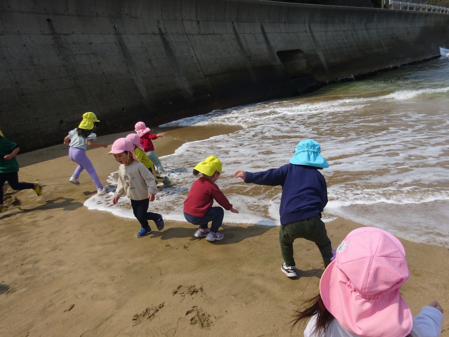 「なみが きた~!」