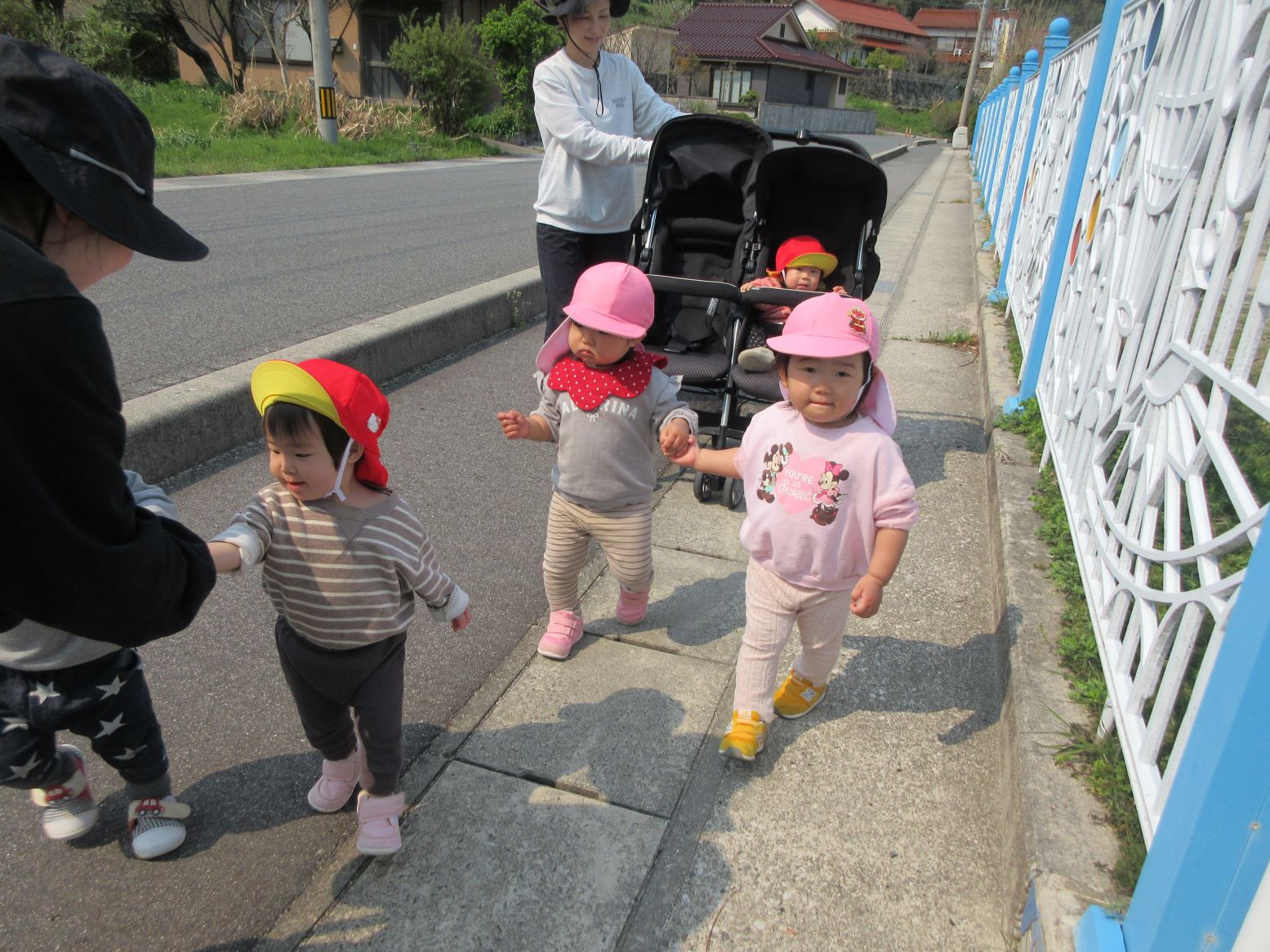 仲良く手を繋いでお散歩です