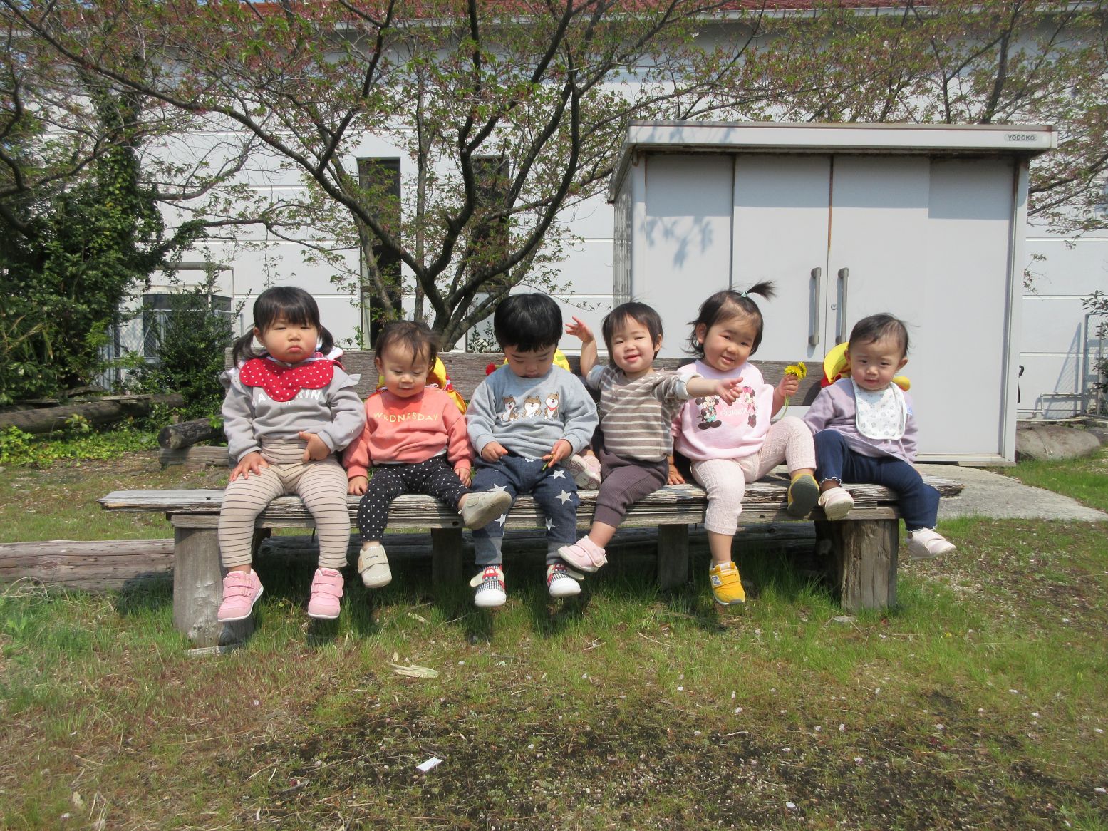 朝は少しドキドキしながら登所しましたが、友達や保育者を見つけると、いつもの笑顔に戻りました。各クラスの遊びの様子を写真でご覧ください。にじ組は、マリン保育所の4・5歳児の友達と一緒に“レッツミュージック”にも参加し、音楽遊びをたくさん楽しみました。