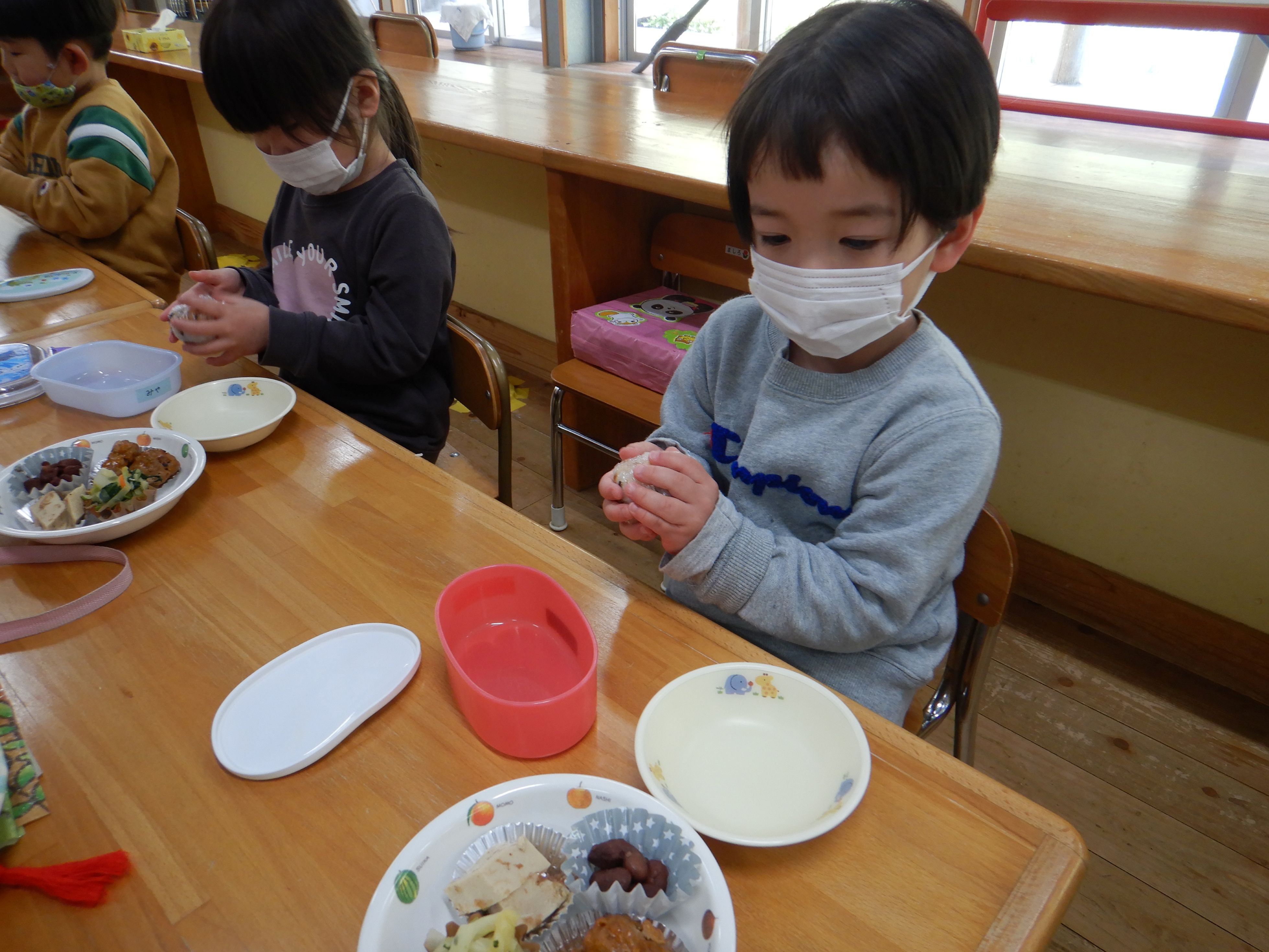 おにぎり、ギュッギュッ