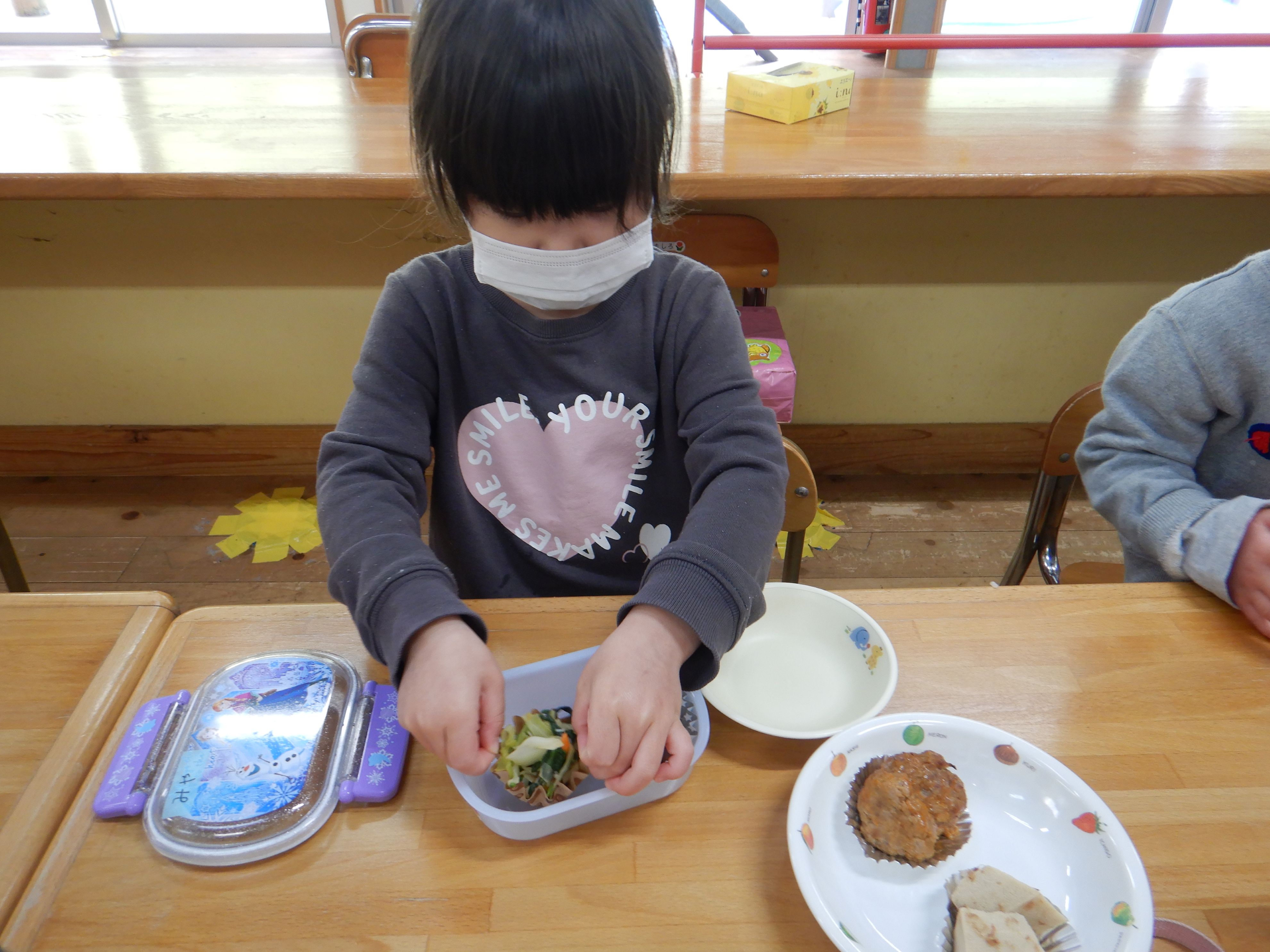 おかずも自分で入れるよ
