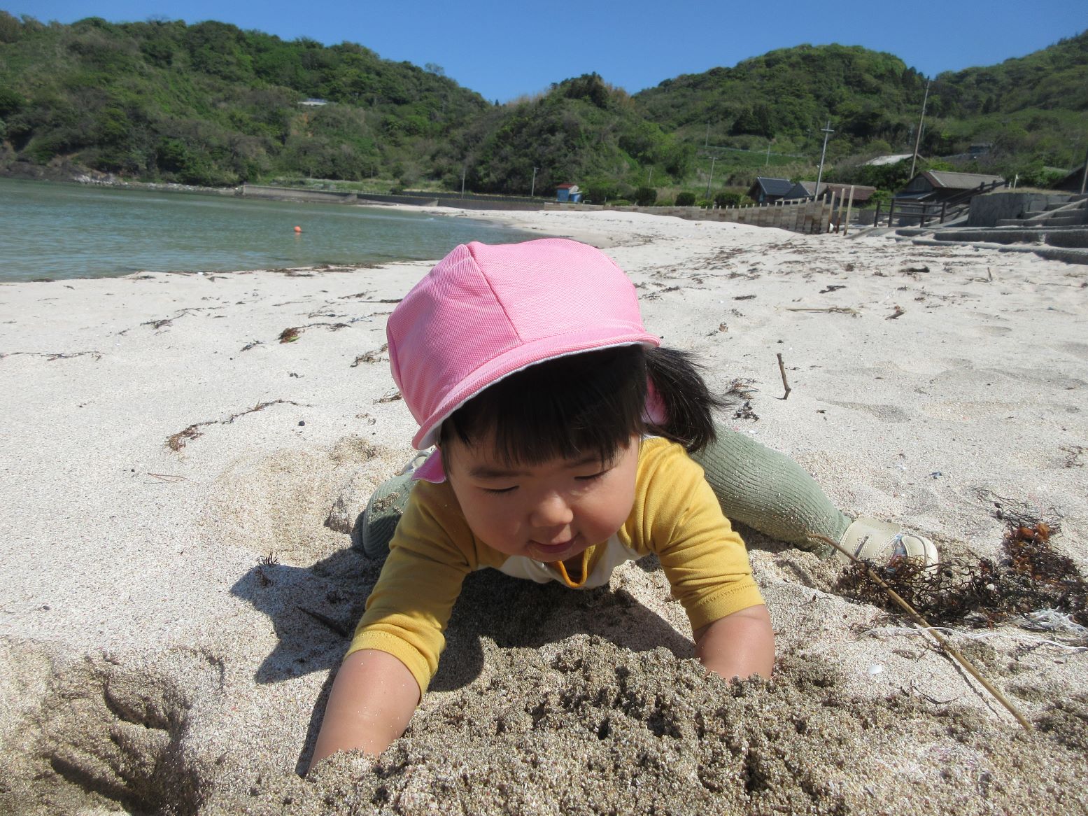 砂の感触を楽しんでいるね