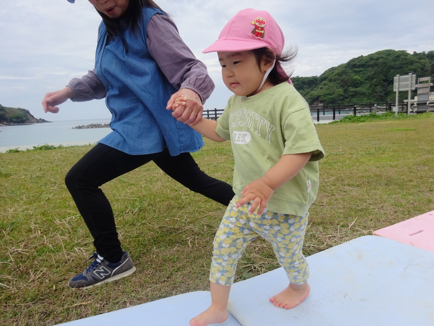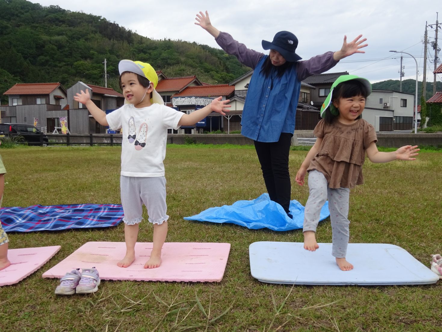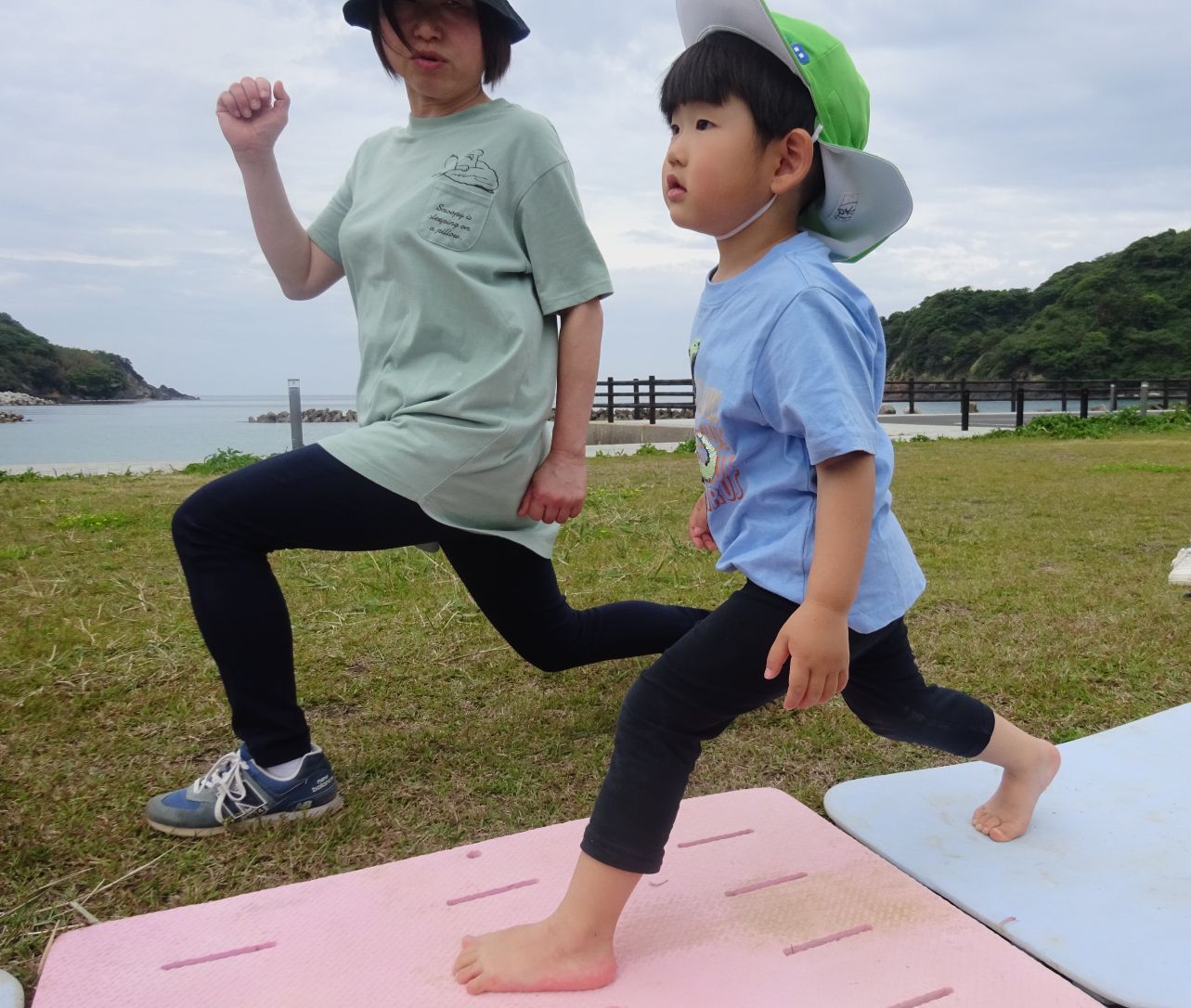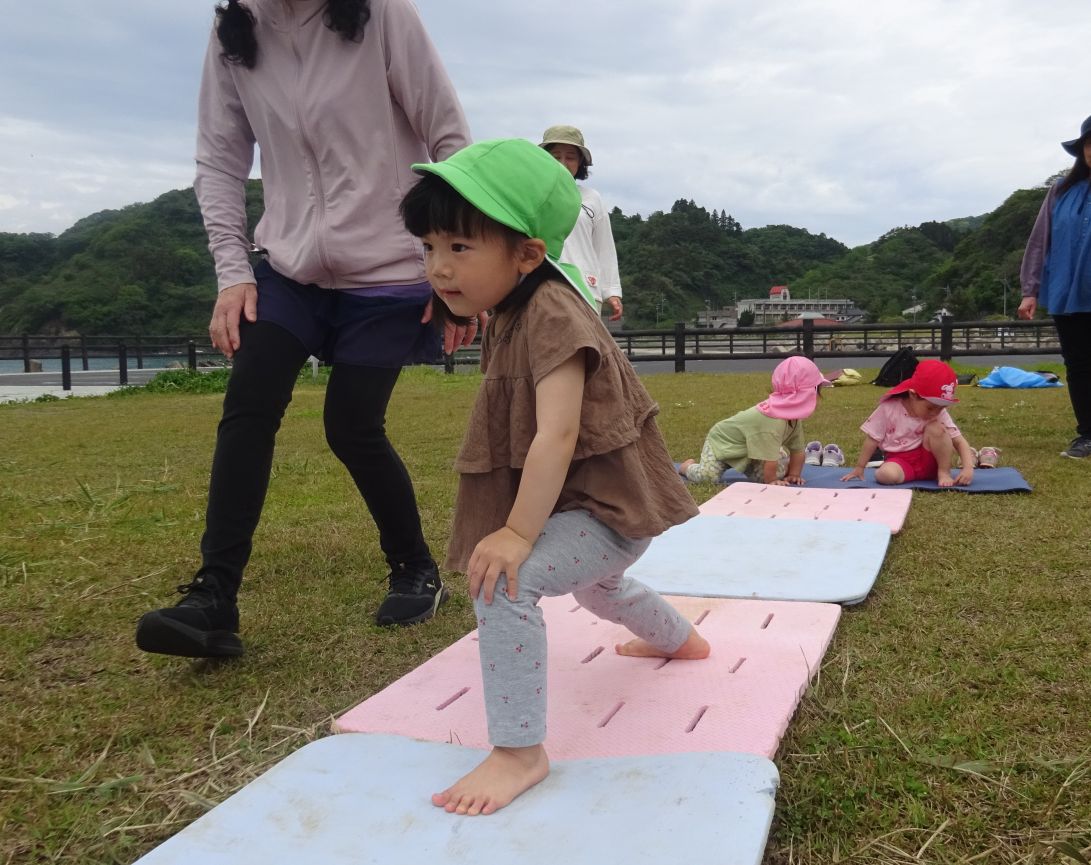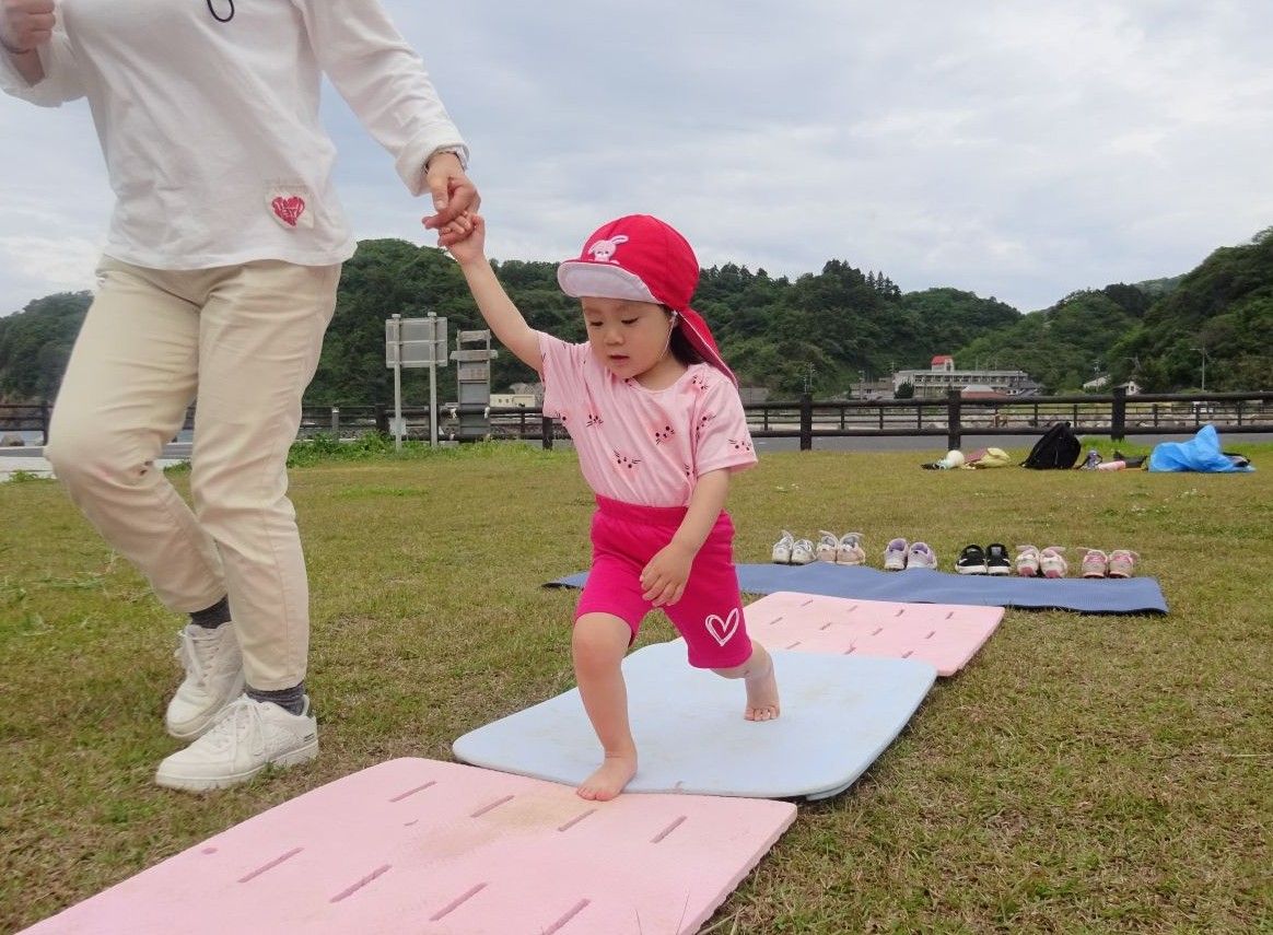 小さいお友達は手を繋いでやってみよう