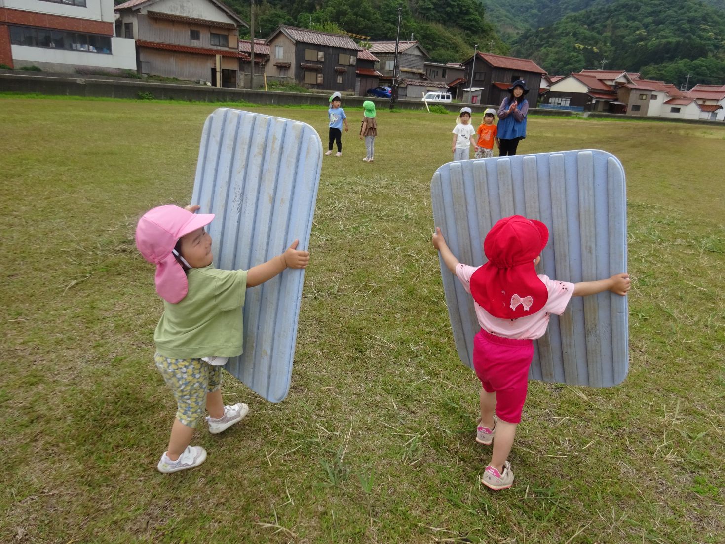 先週に引き続き、体操や大股歩き、体より大きいものを運ぶ、走るなどで《全身》を元気にしました。