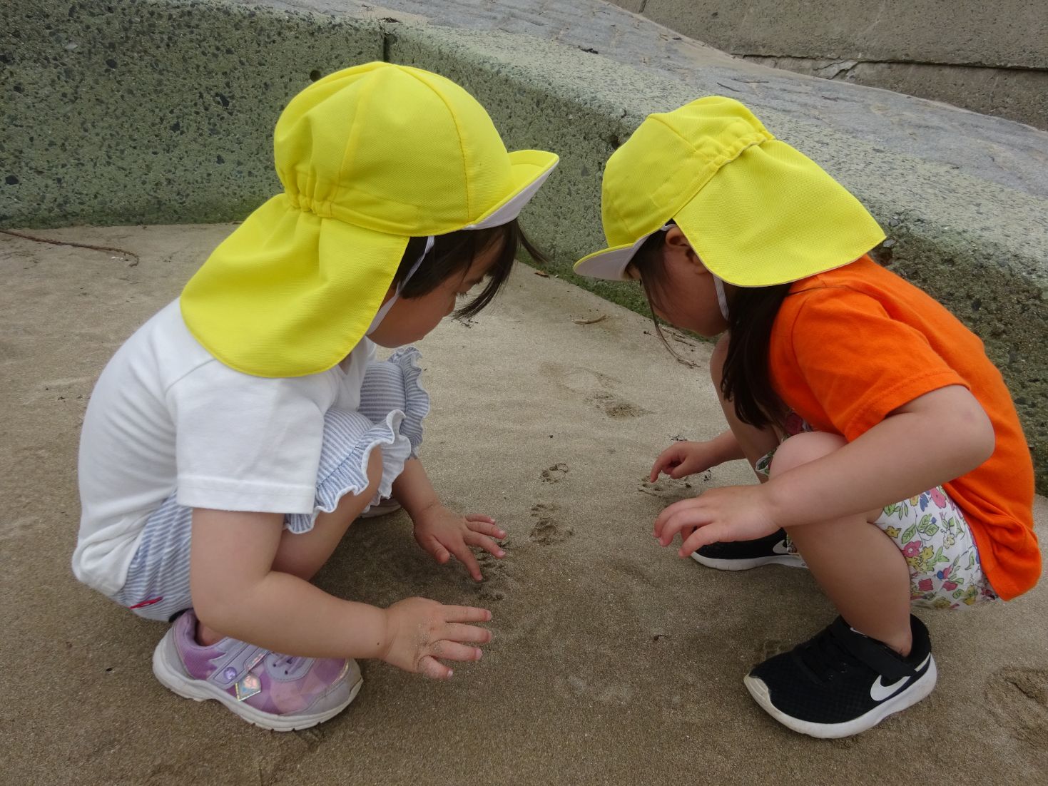 浜で遊んだよ「えーこれ、だれのあしあと~」
