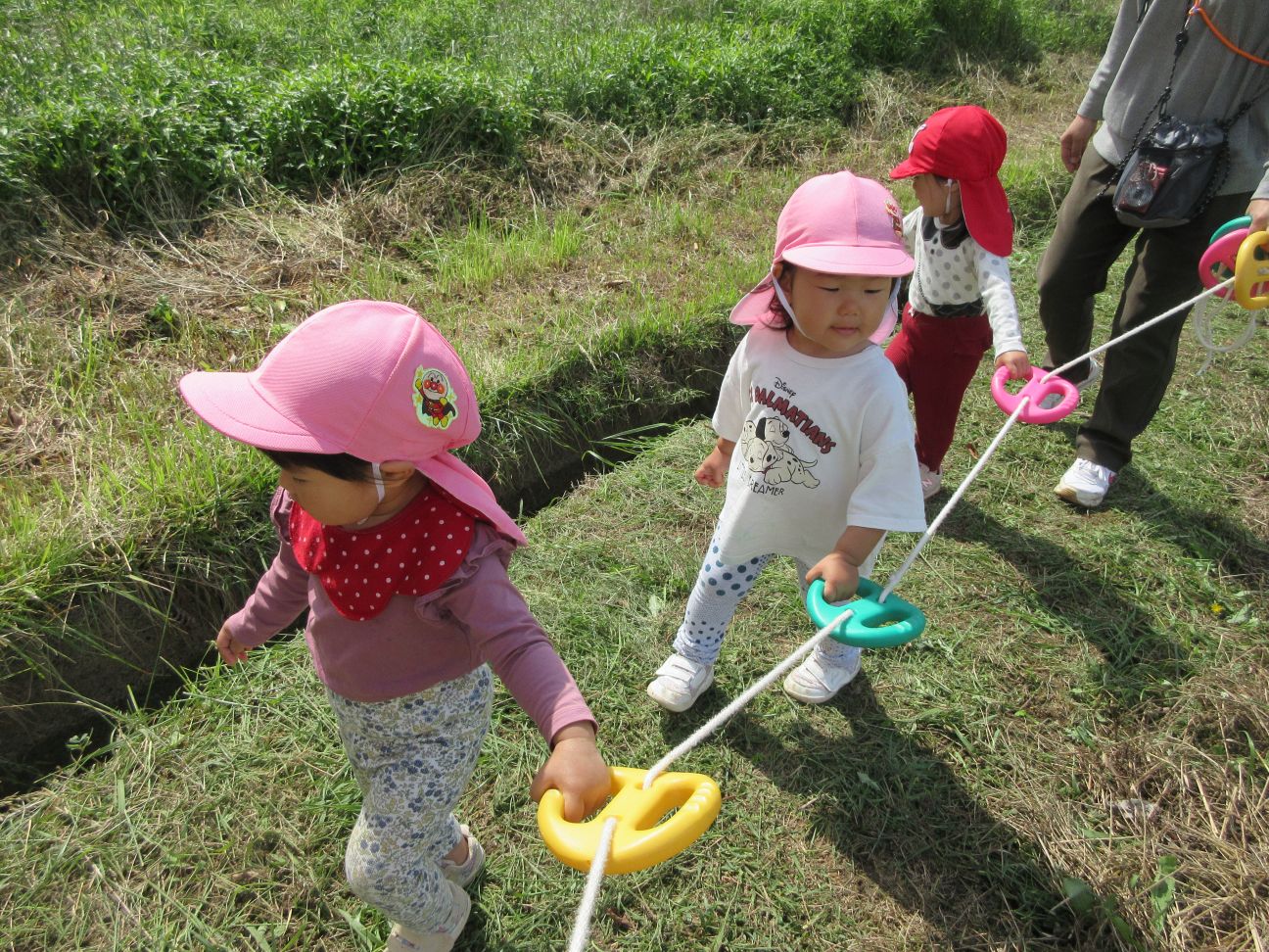 初めてお散歩ロープを握って歩きました
