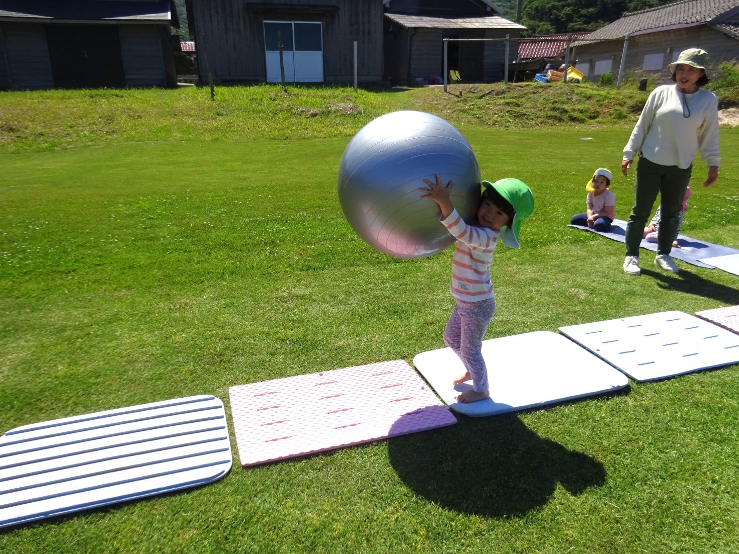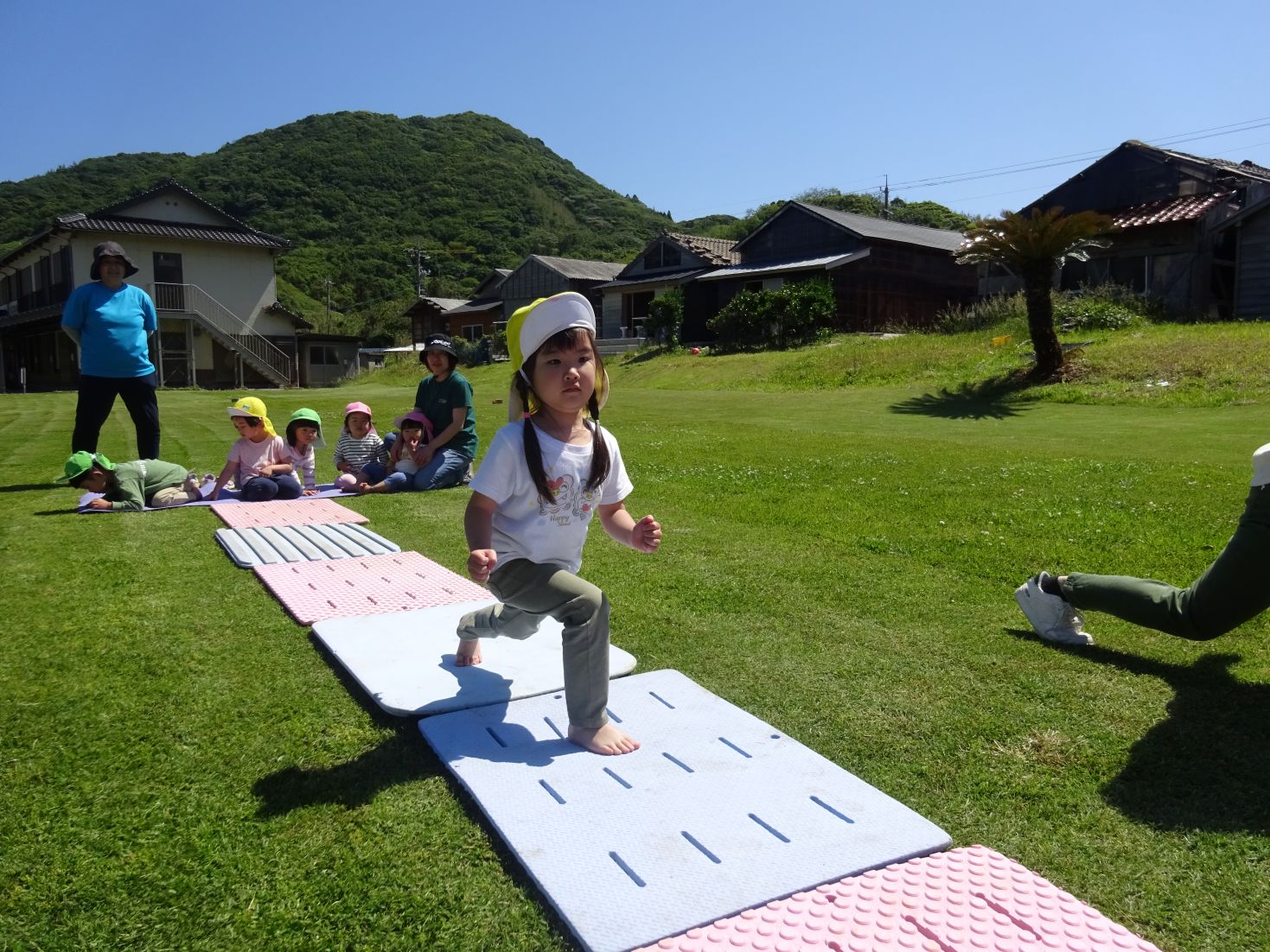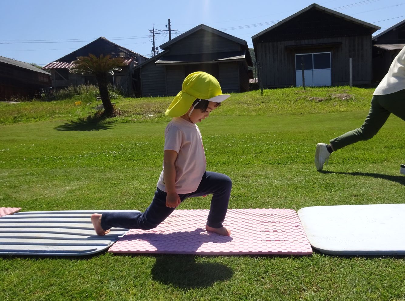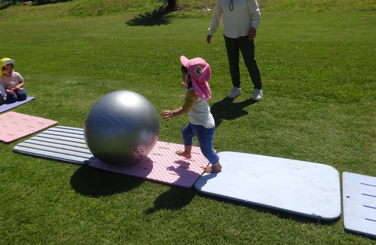 5月の“わくわくチャレンジ集会”のテーマは【全身】。今月最後の集会を小波海水浴の芝生の上で行った後、芝生の上や水辺での遊びを楽しみました。