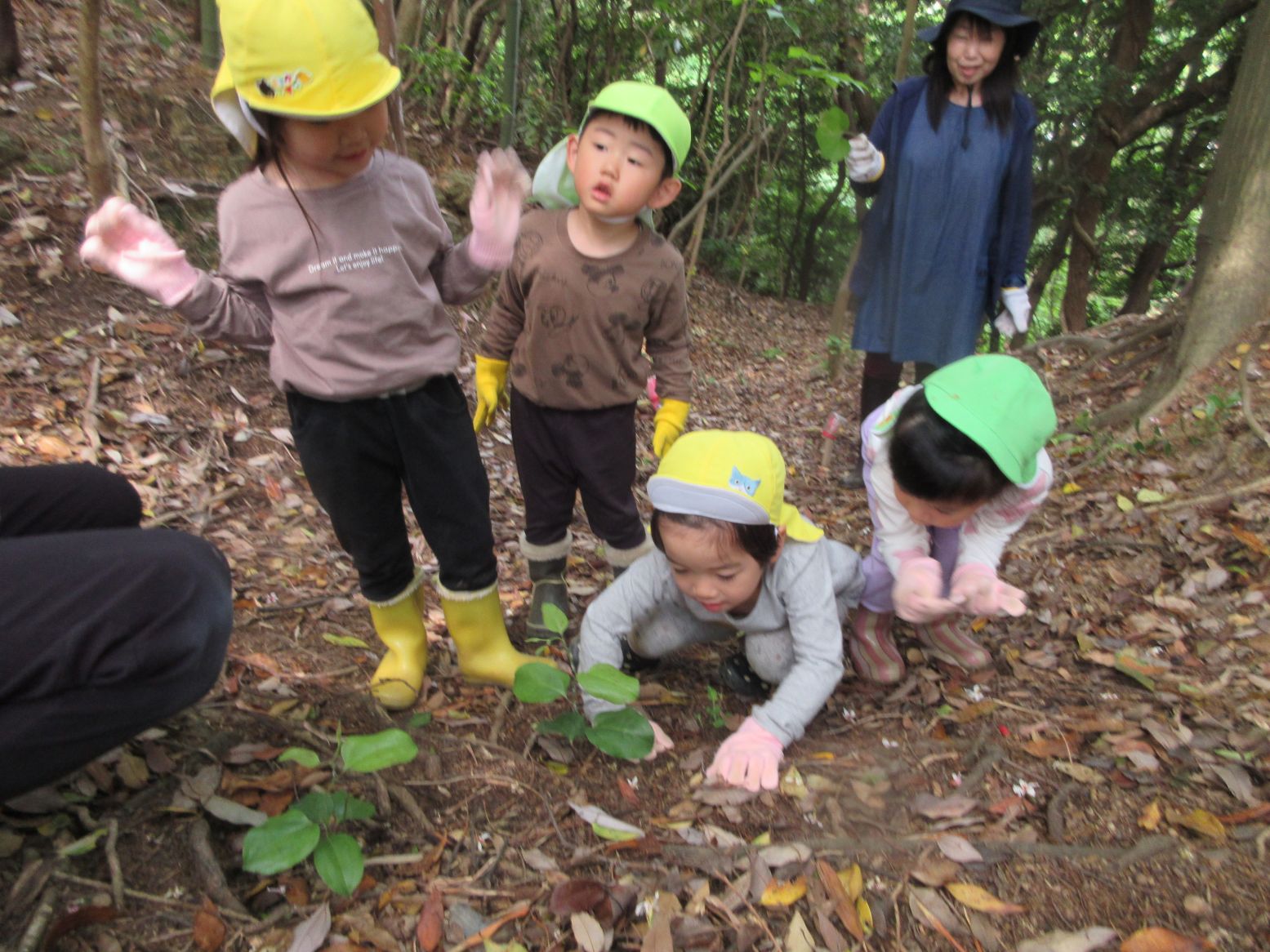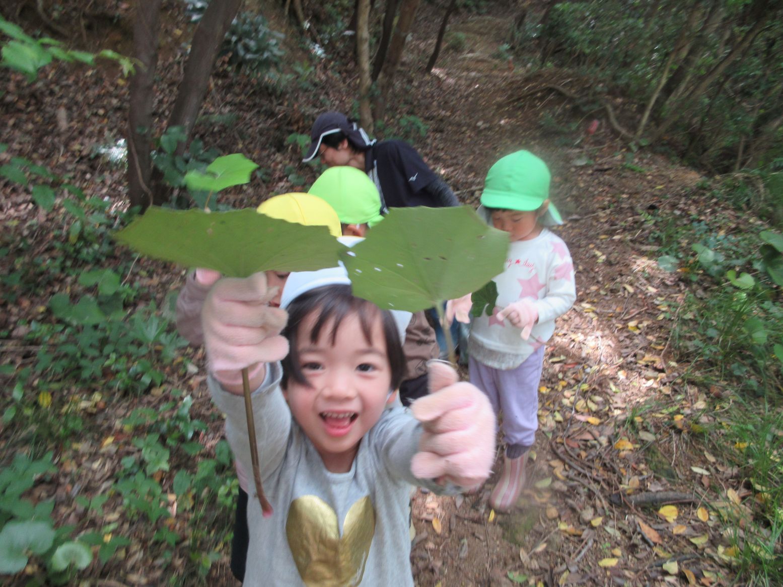 こども達が森の中で、かたらの葉をたくさん見つけました!