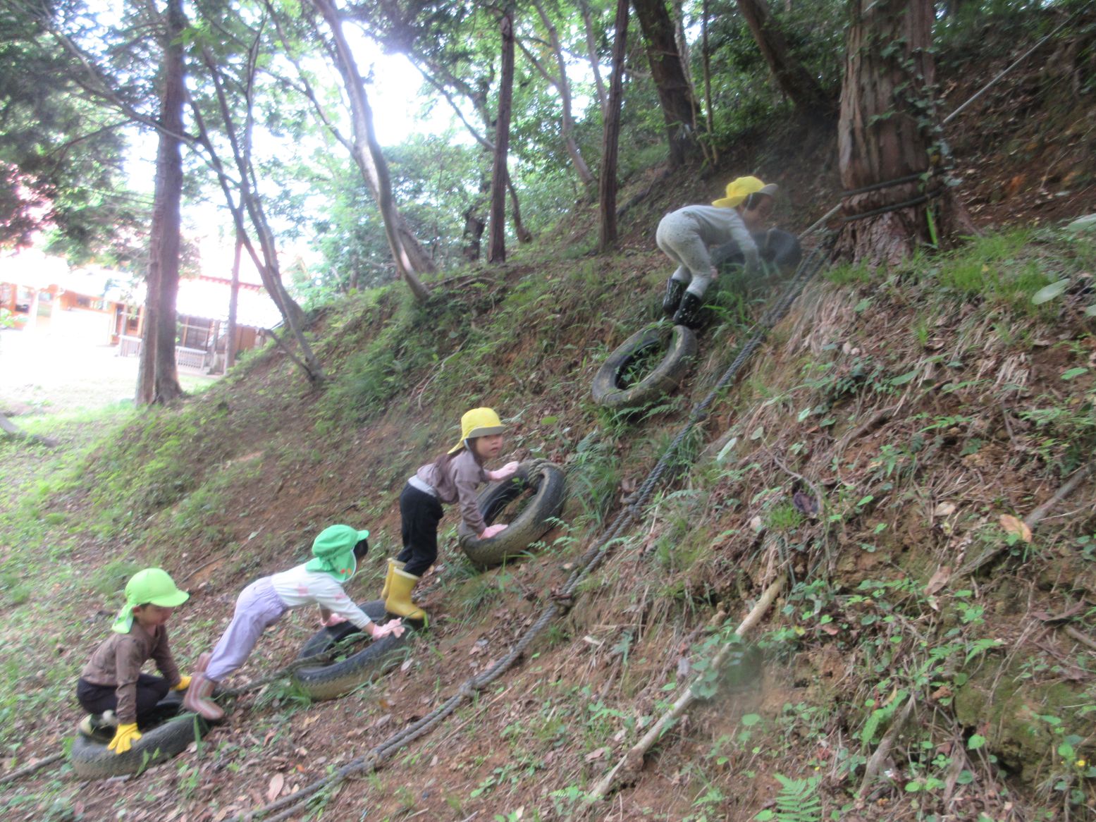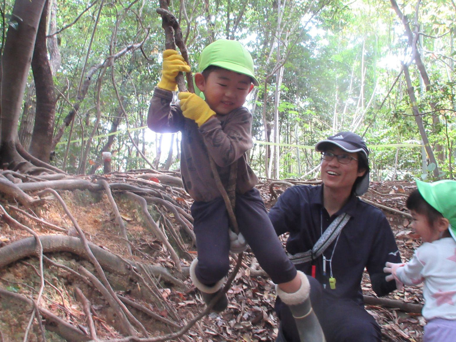 「おもしろ~い!!」ターザンロープのようにして遊んでいます