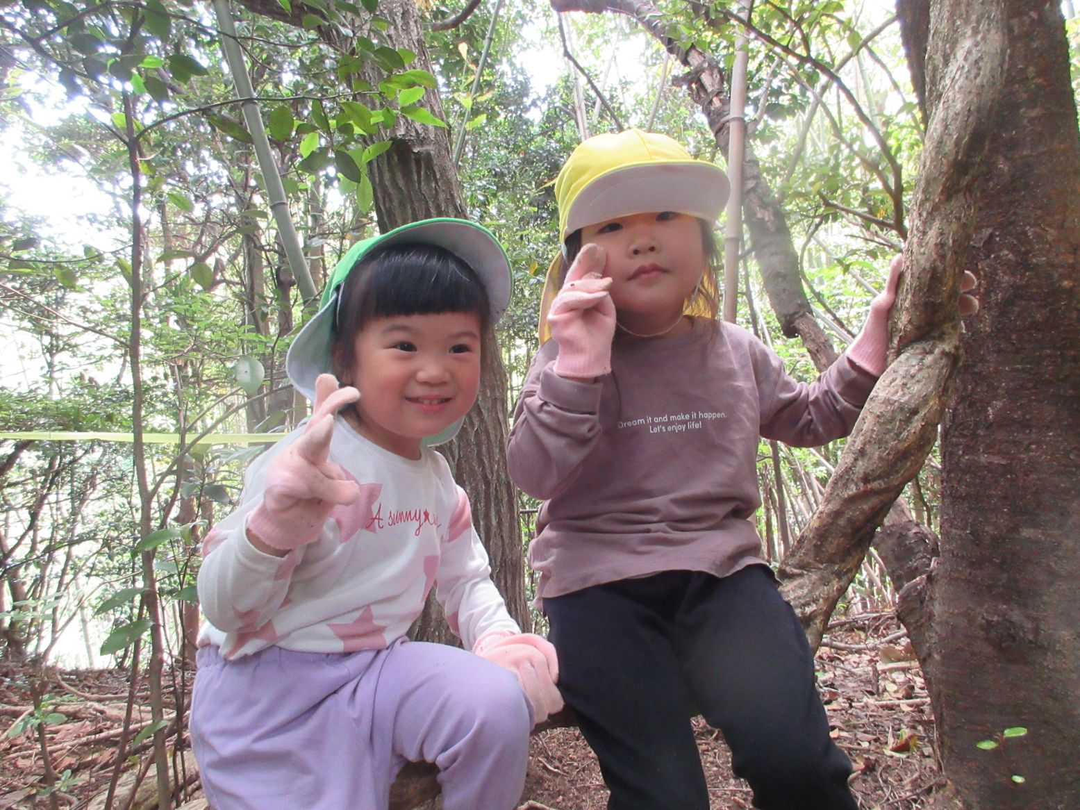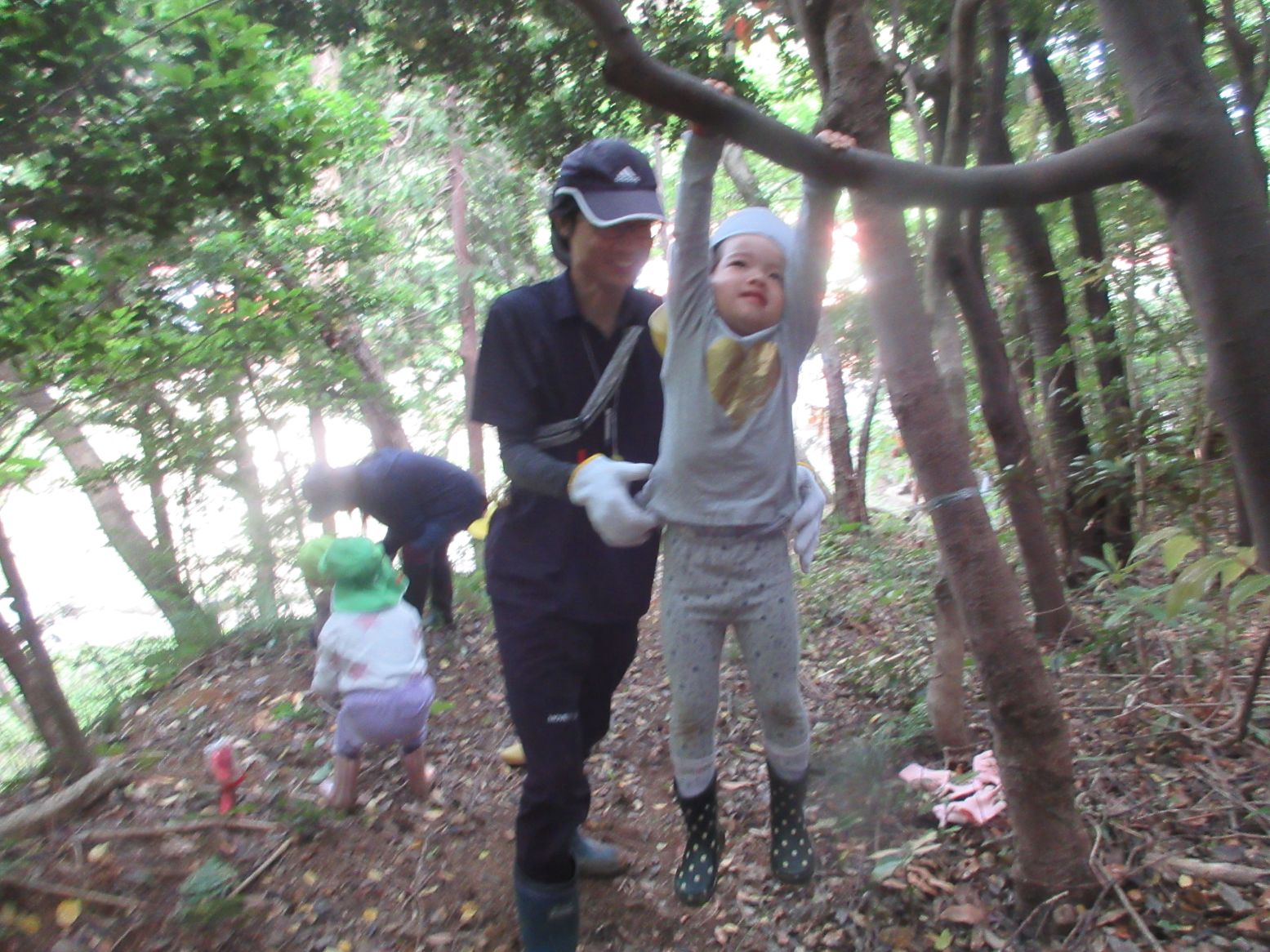 森では他にも、前年度にしていた遊びを覚えていて、枝にぶら下がったり、グルグルメリーゴーランドをしたり、落ち葉のシャワーをしたり、化石発掘ごっこをしたりして遊びました。