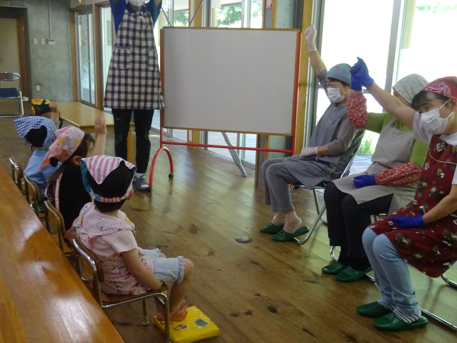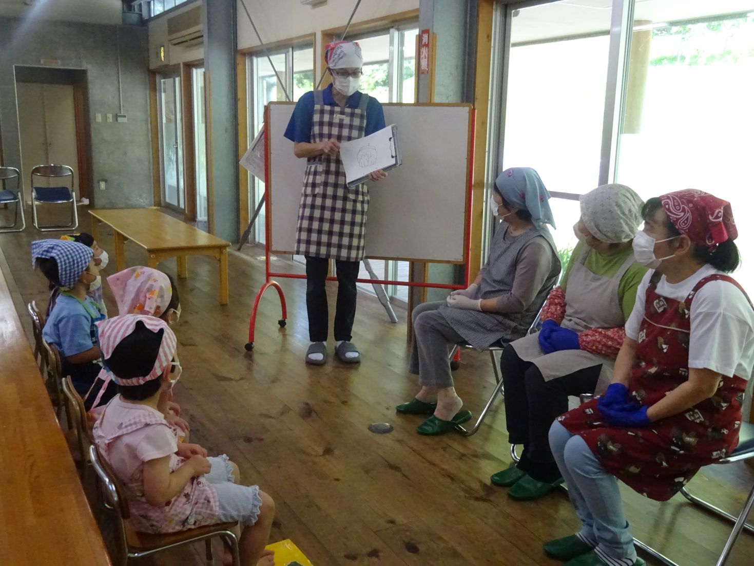 挨拶後“どうして 柏餅を食べるの”ということを、みんなで考えてみました
