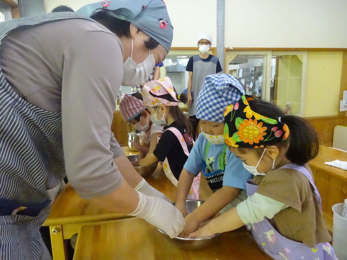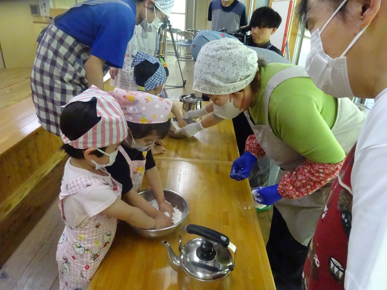 今日は地域講師の方3名に来て頂き、一緒に柏餅を作りました。