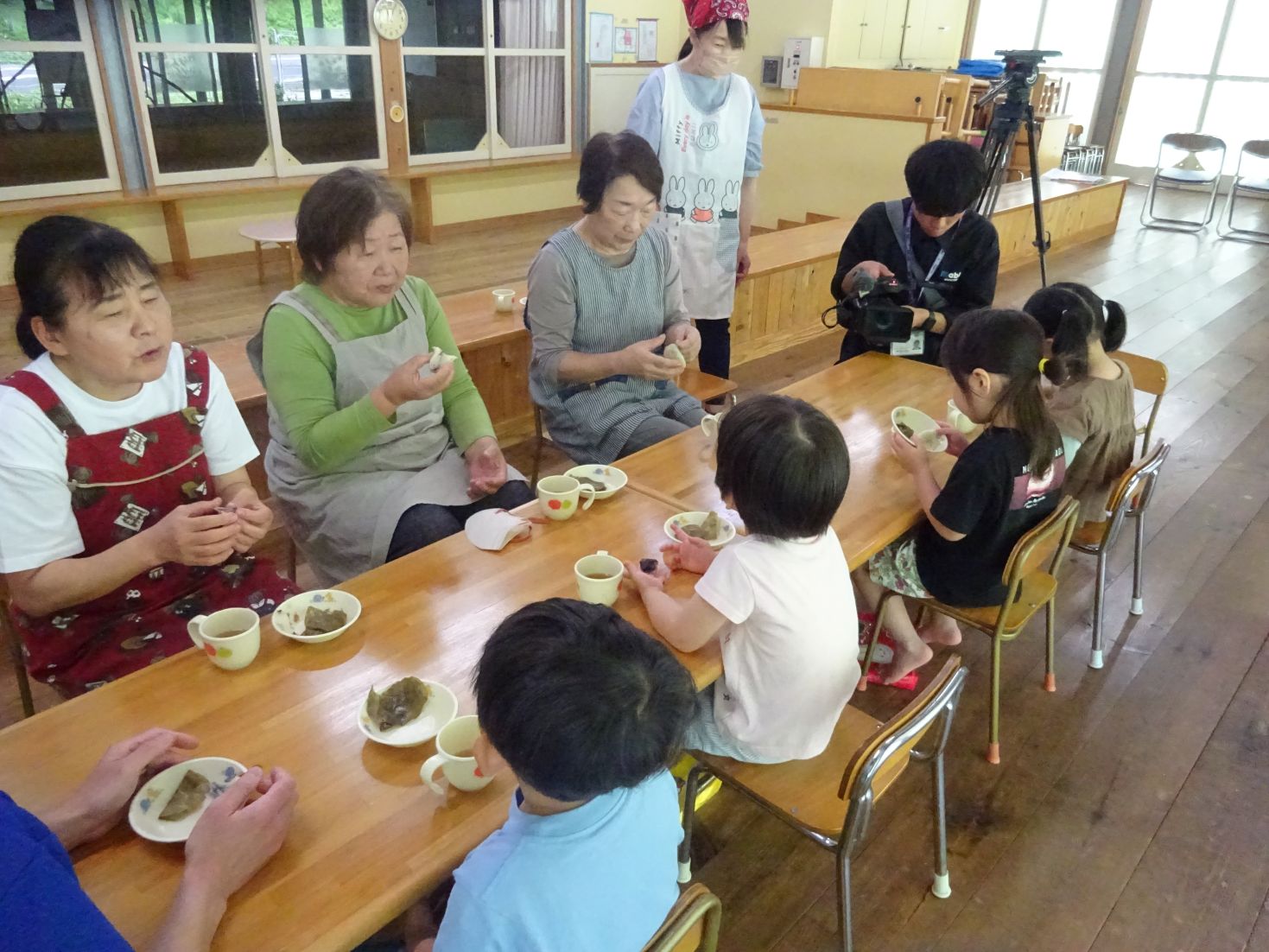 蒸しあがった柏餅は、みんなで語らいながら楽しくいただきました。これからも野波保育所のみんなが、元気に大きくなりますように☆彡