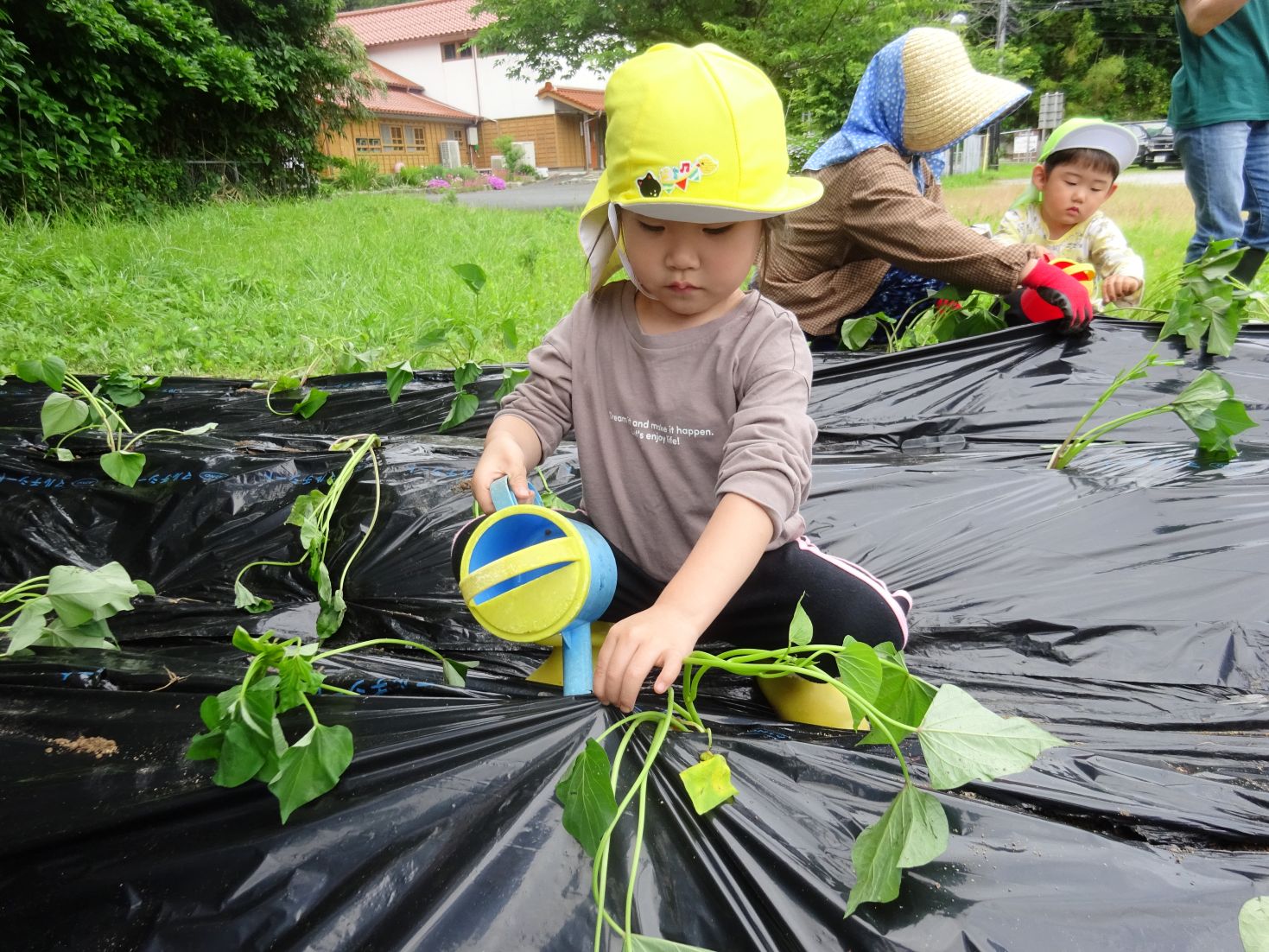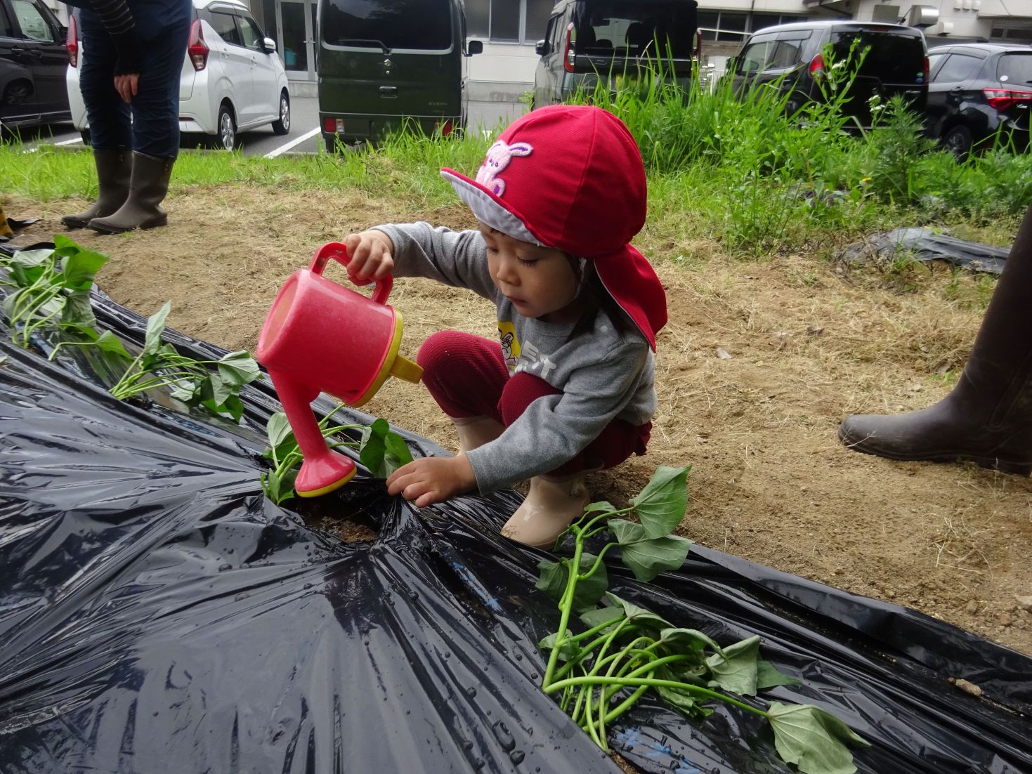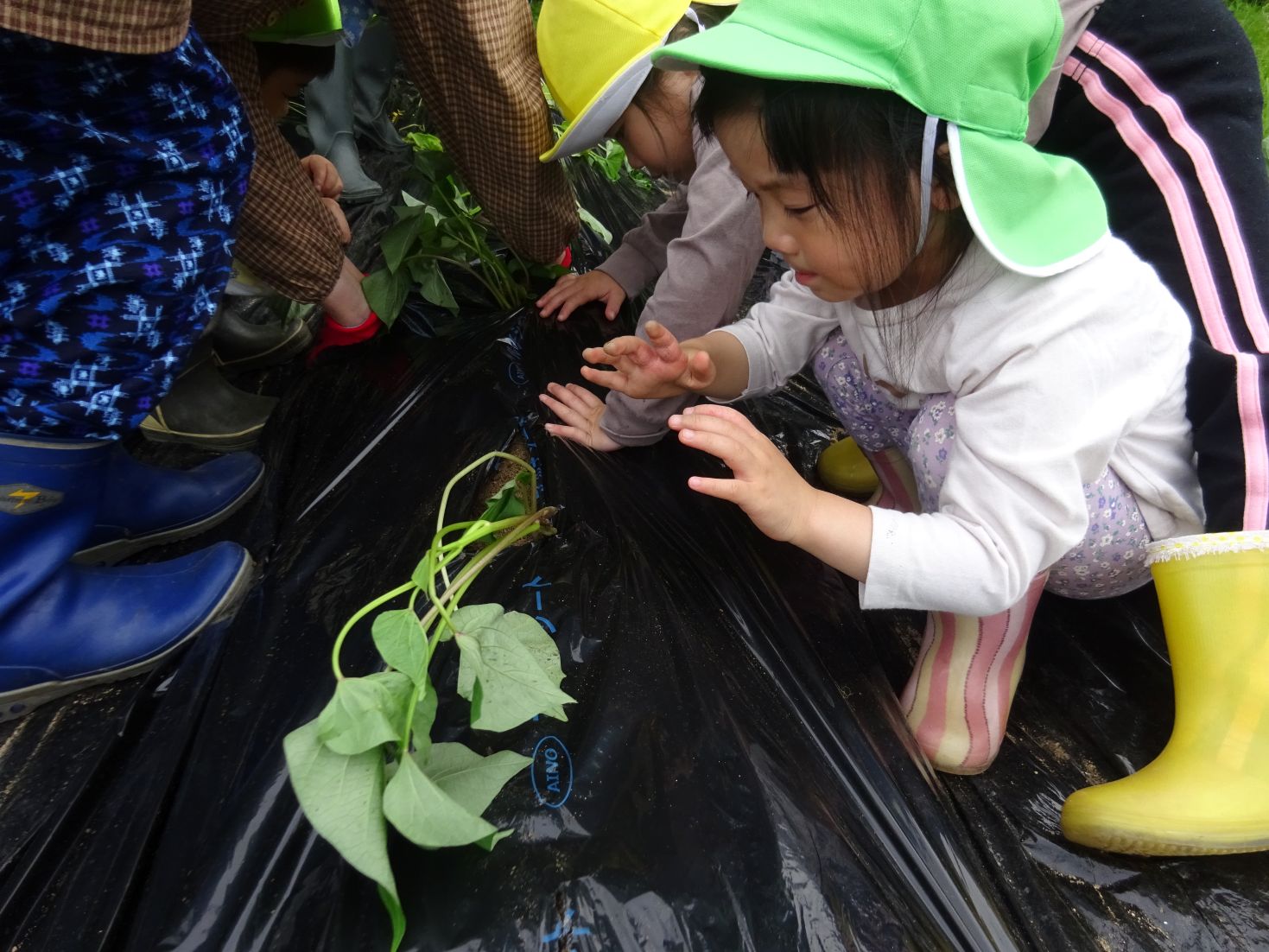 最後はみんなに、さつま芋が大きくなったら、どんな料理をしてたべたいか聞いてみました。こども達の一番人気は…味噌汁!!でした♪収穫が楽しみだね!!