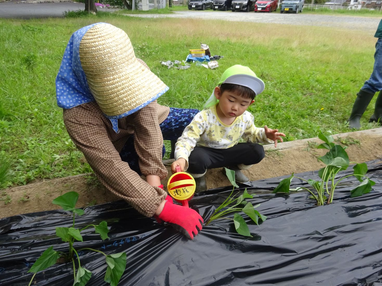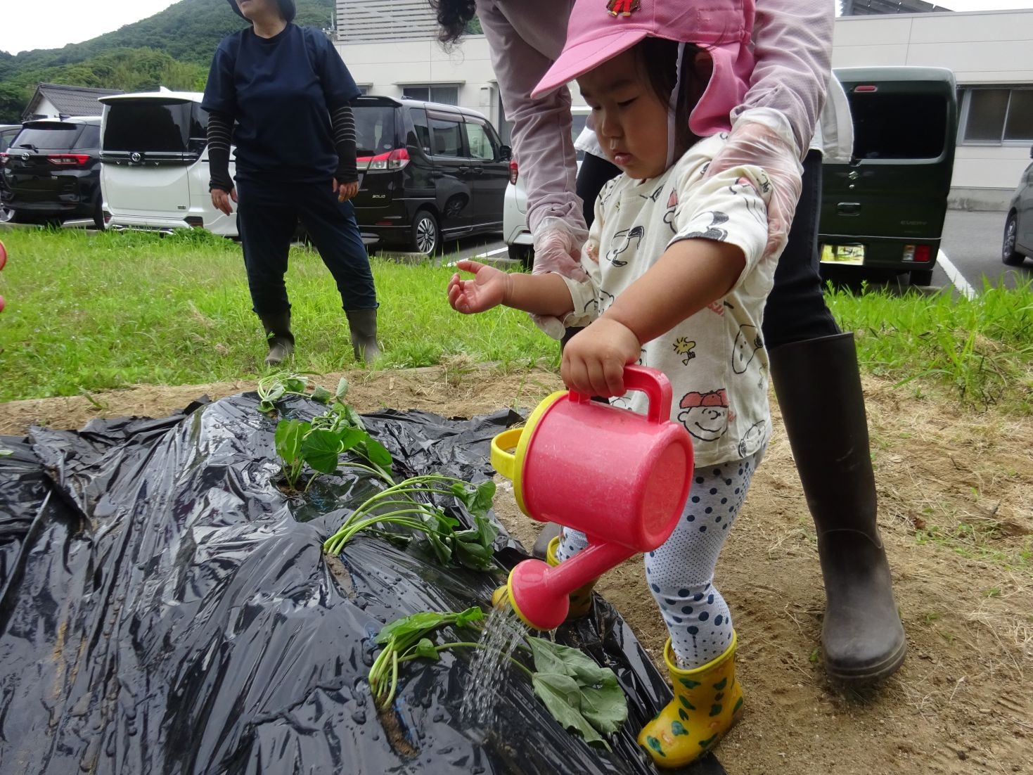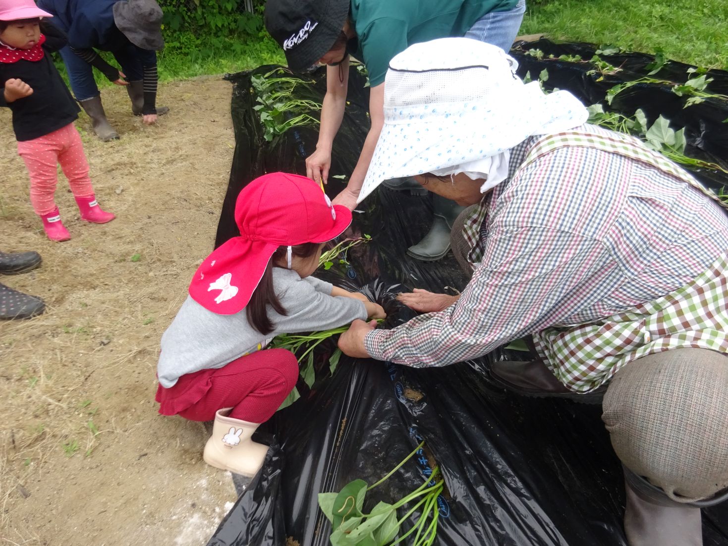 最後はみんなに、さつま芋が大きくなったら、どんな料理をしてたべたいか聞いてみました。こども達の一番人気は…味噌汁!!でした♪収穫が楽しみだね!!