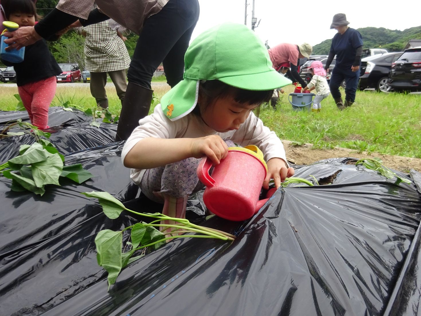 今日は地域講師の方2名に来て頂き、さつま芋の苗50本を植えました。