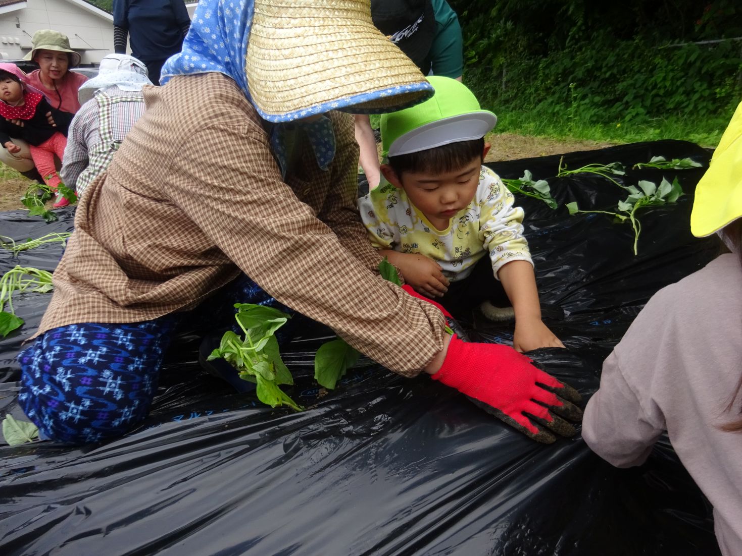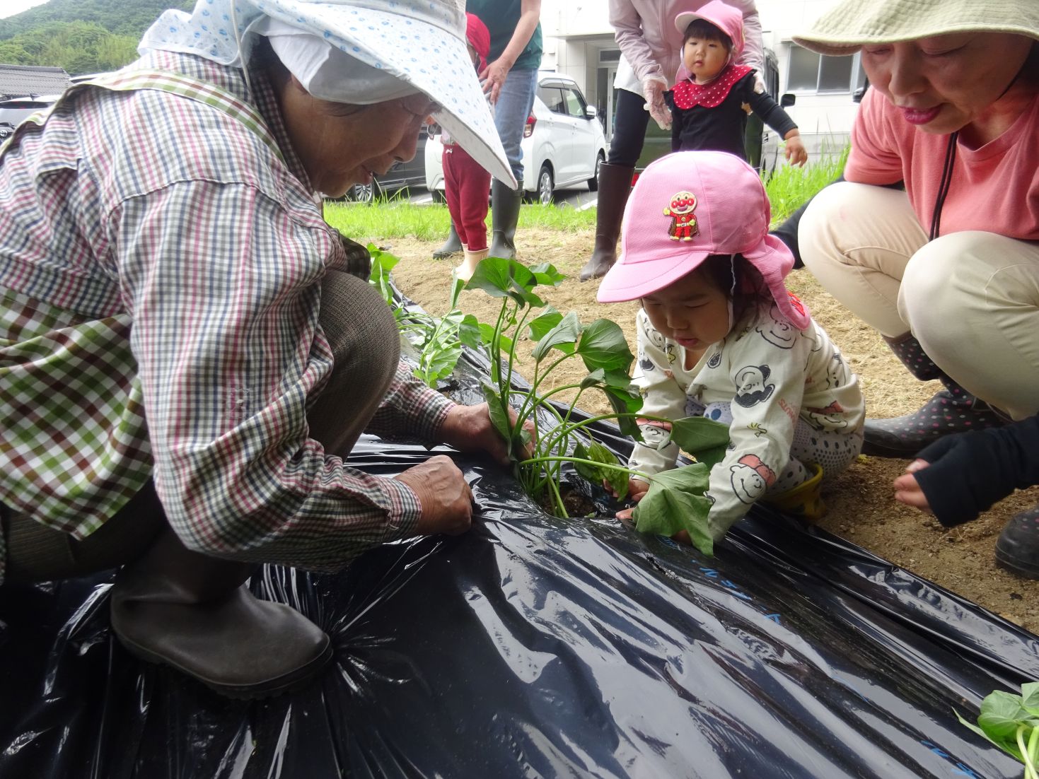 そしていよいよ苗植え。手際よくこども達を誘い「両手でこのぐらい掘ってごらん」「(苗を)横にしてね」「そうそう!土をかけてあげて」と優しく教えてくださいました。