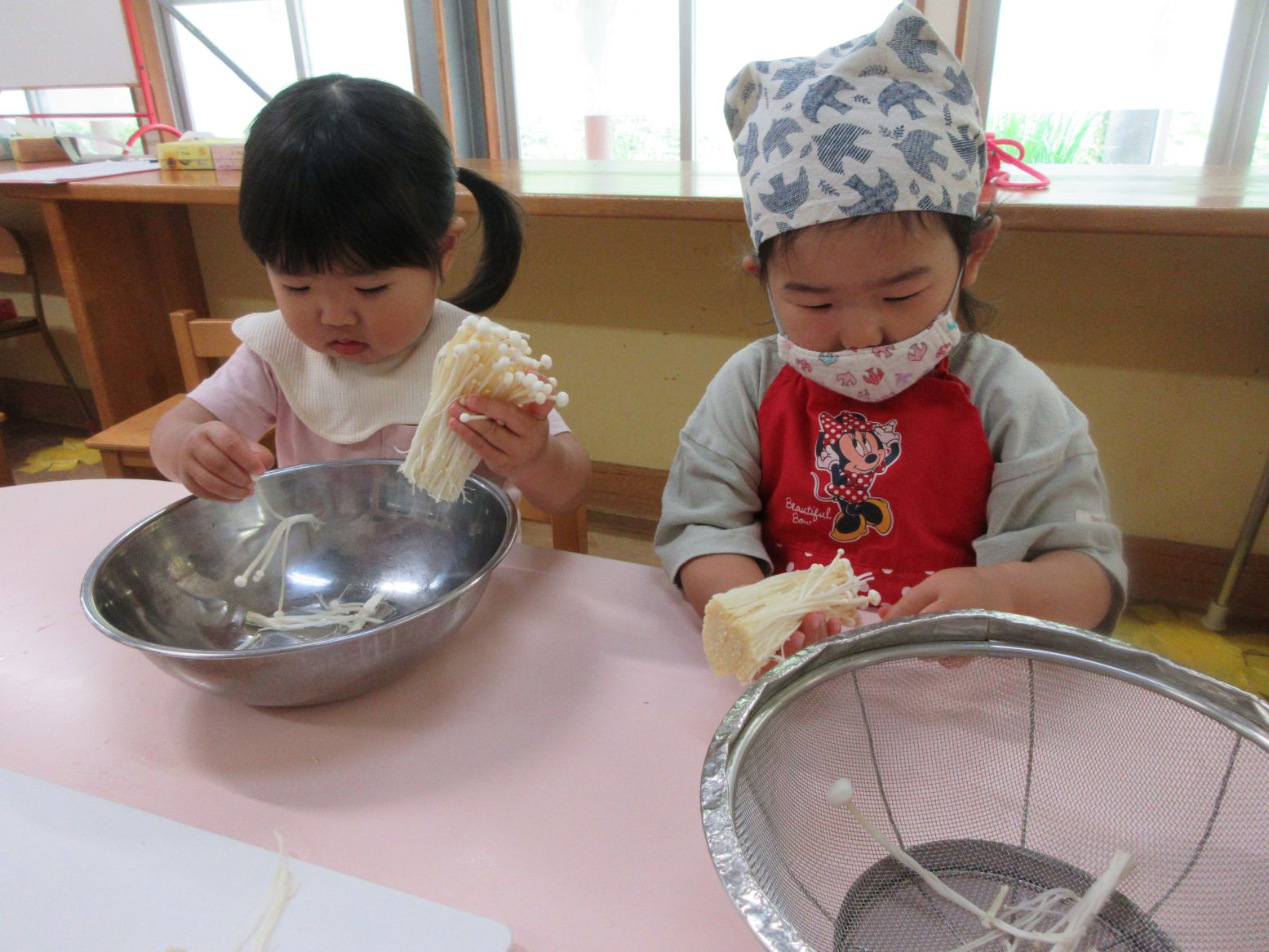 今度はえのき茸をさくよ