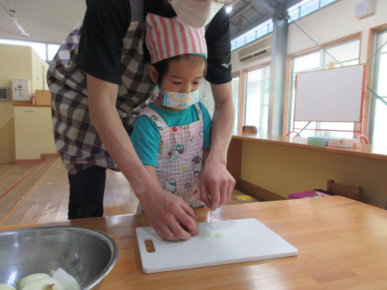 ‟自分達で収穫した玉葱を、みんなで美味しく食べ”“自分達で作った料理を食べることで、改めて食への関心をもつことができた”クッキングでした。