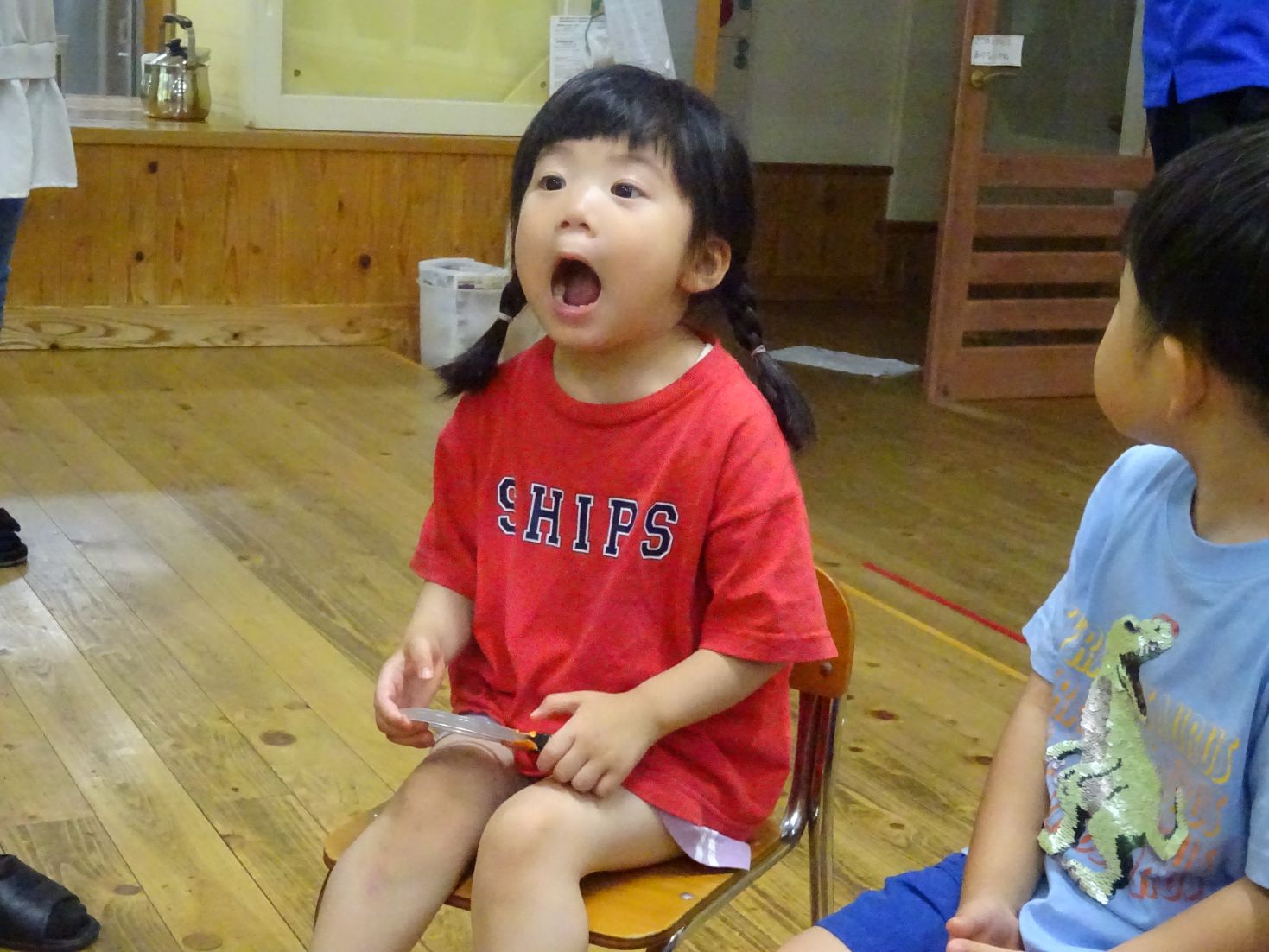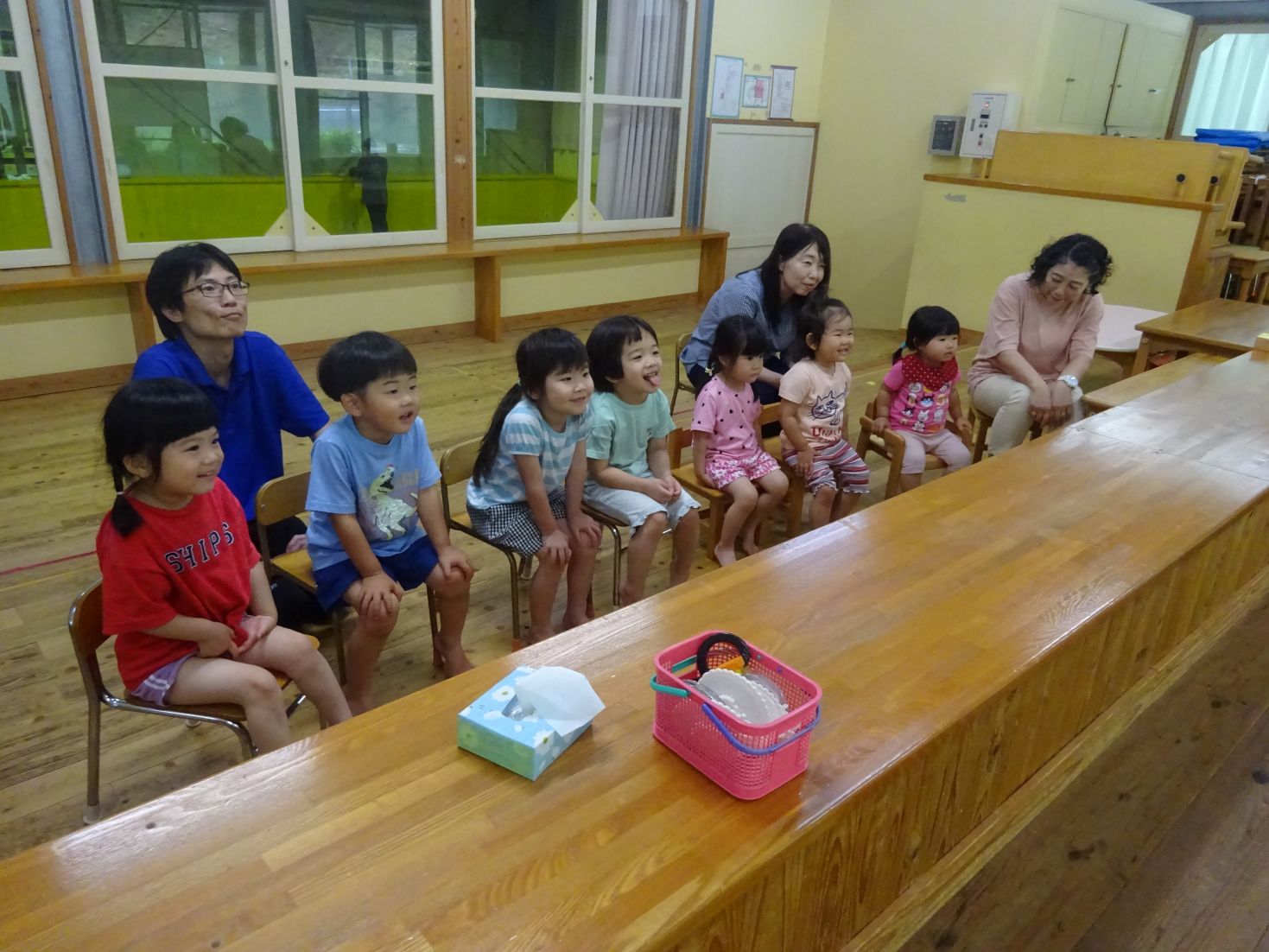 エプロンシアターでは、食べ物の味覚やよく噛むことの大切さを楽しく見て、知ることが出来ました。舌が出てくるのが面白く、思わず真似をして自分の舌を伸ばしていたこども達でした。