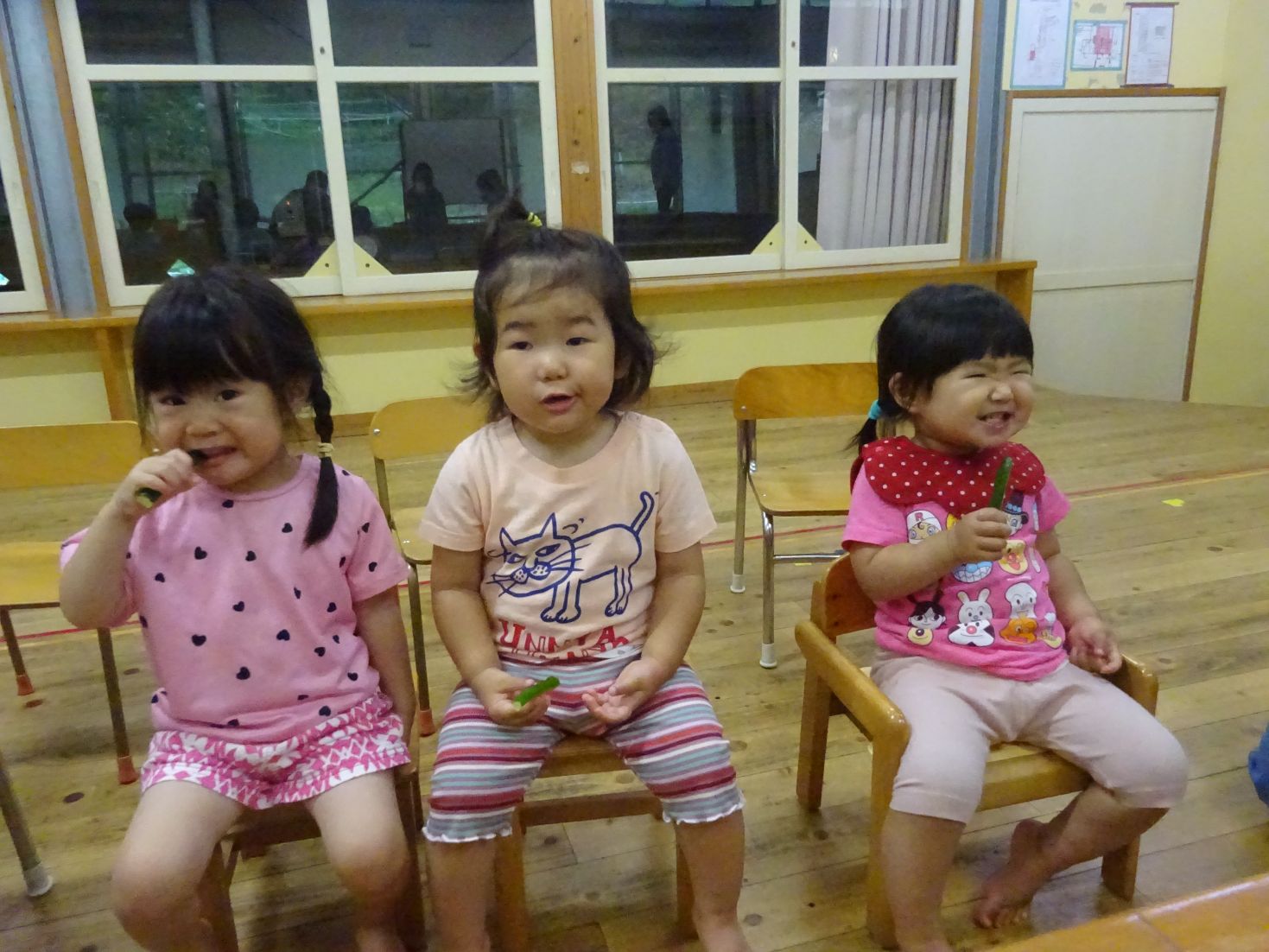 『6月4日は虫歯予防デー』そこで、今月のお楽しみ会は『歯』や『虫歯予防』に関する内容で行いました。
