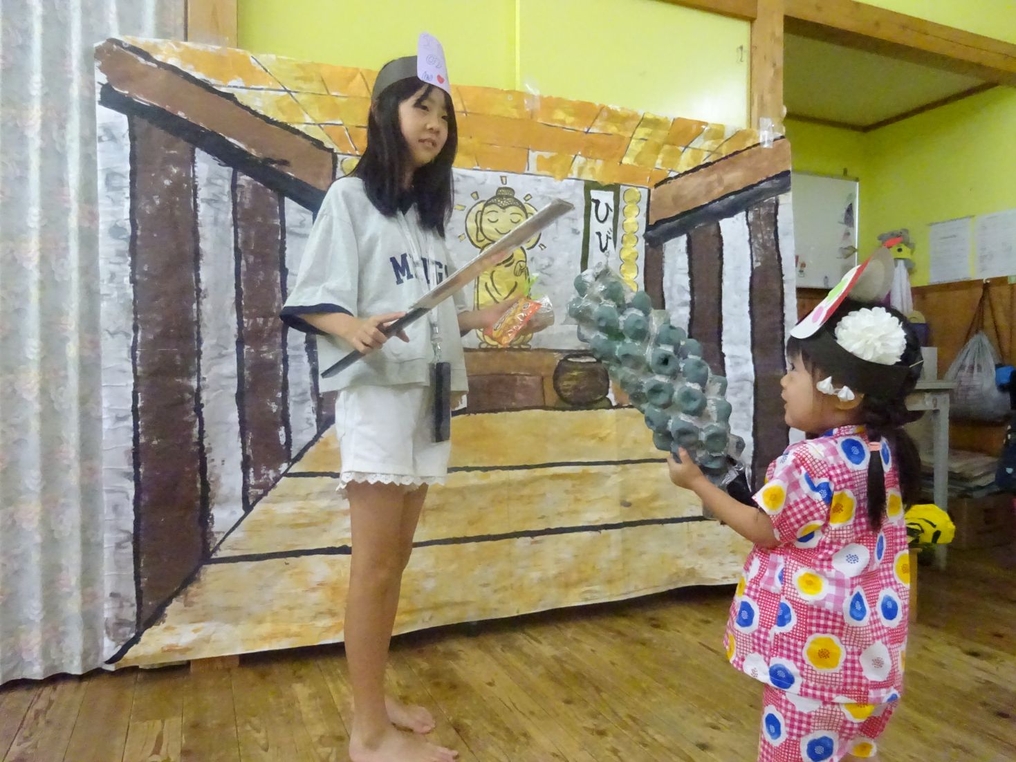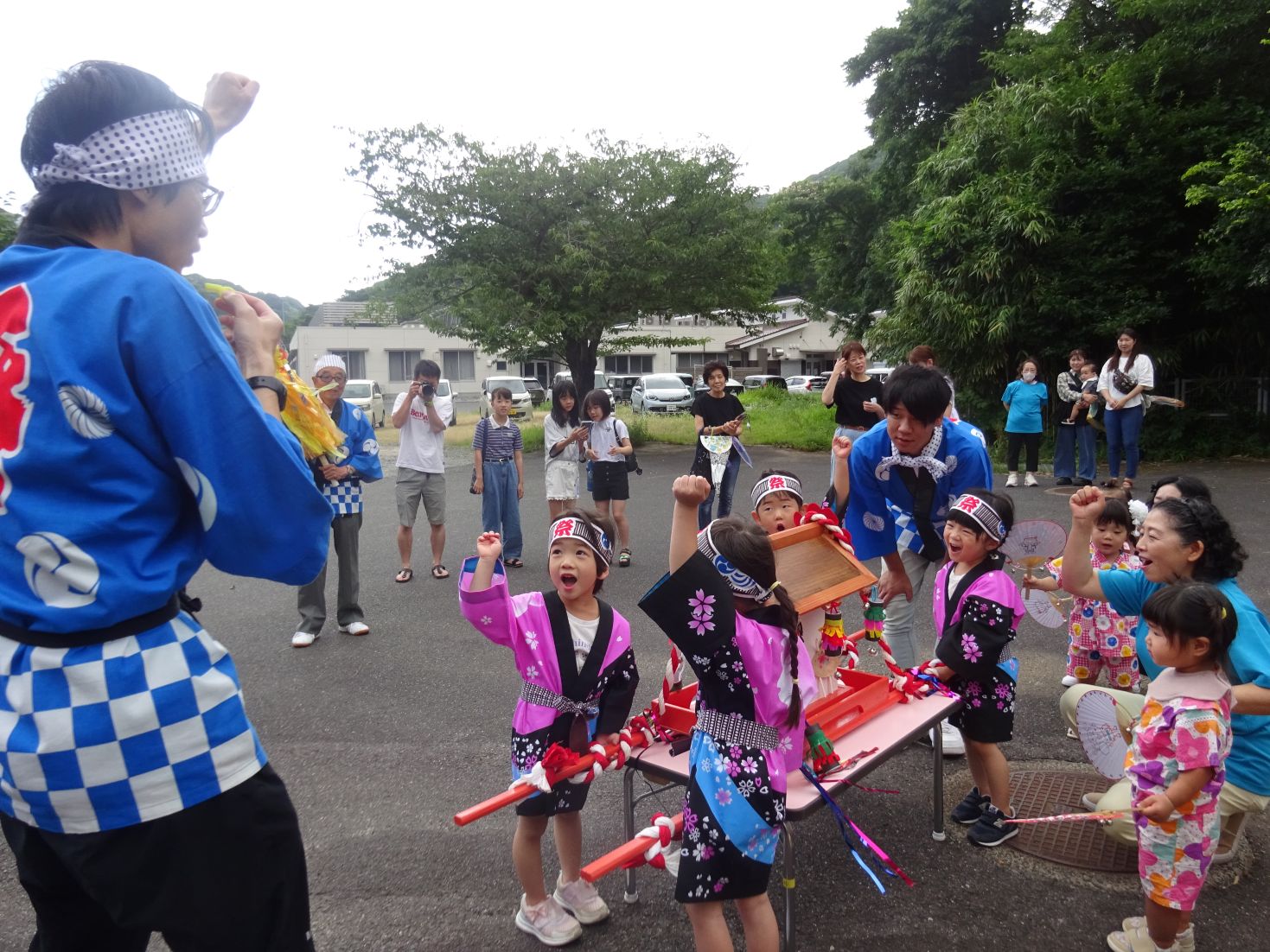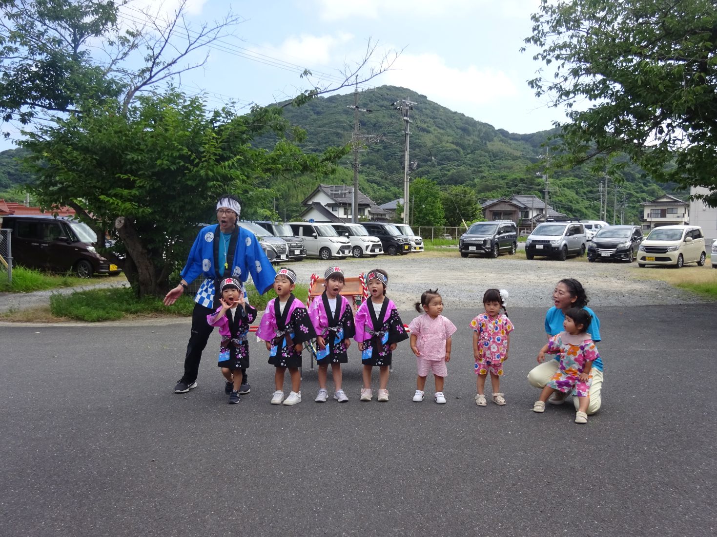にじ組の「これからなつまつりが はじまるよー」の発声で、いよいよお祭りが始まります