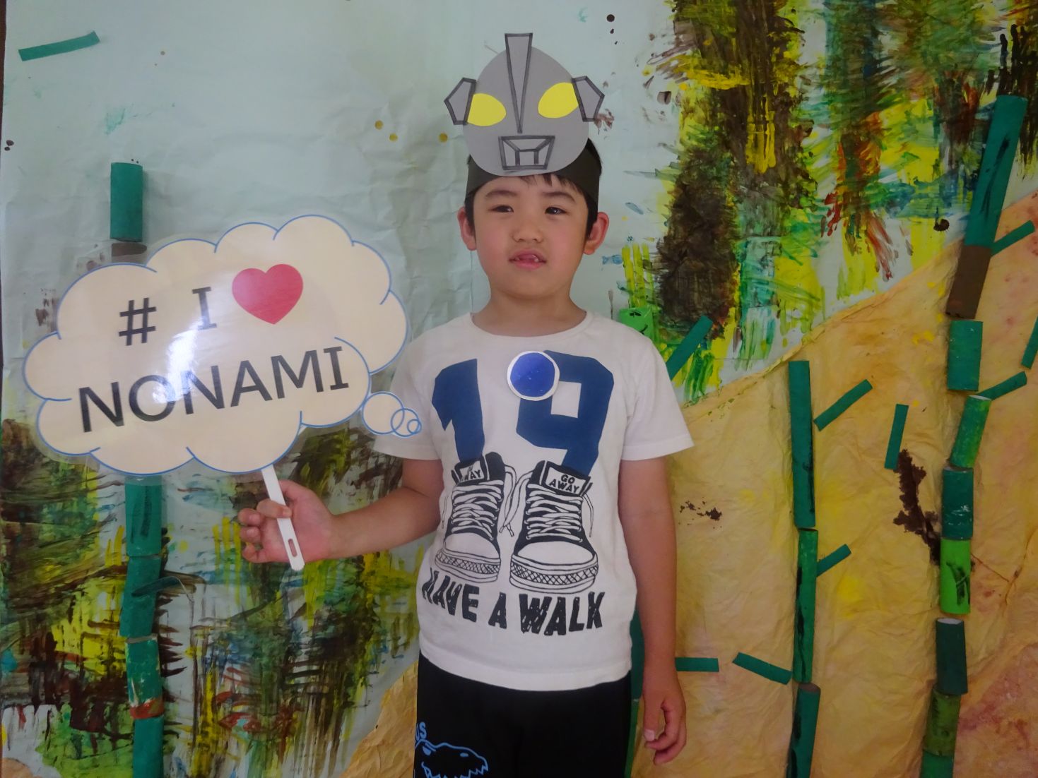 『お面deハイチーズ』お面を作って背景の前で写真撮影!