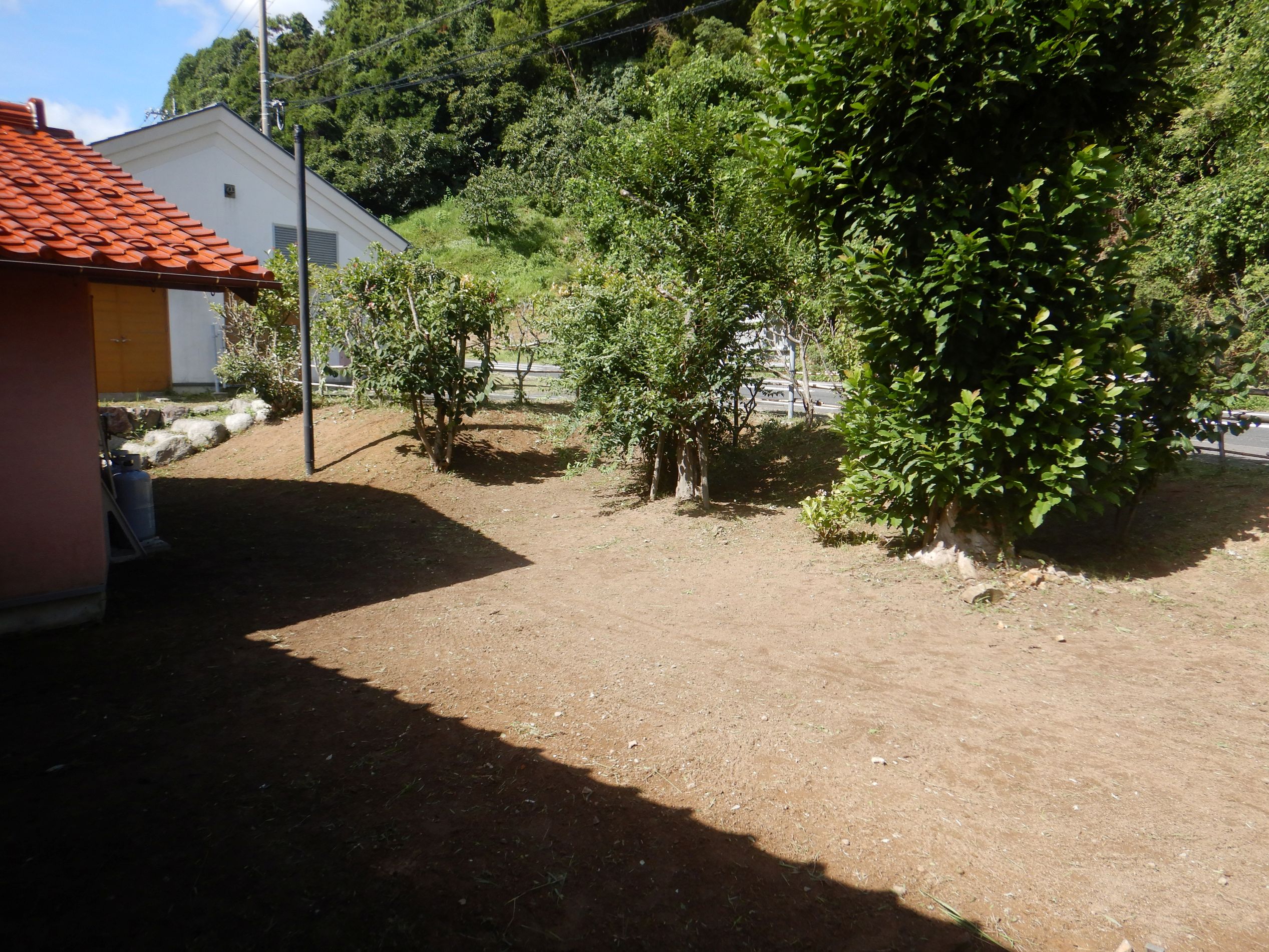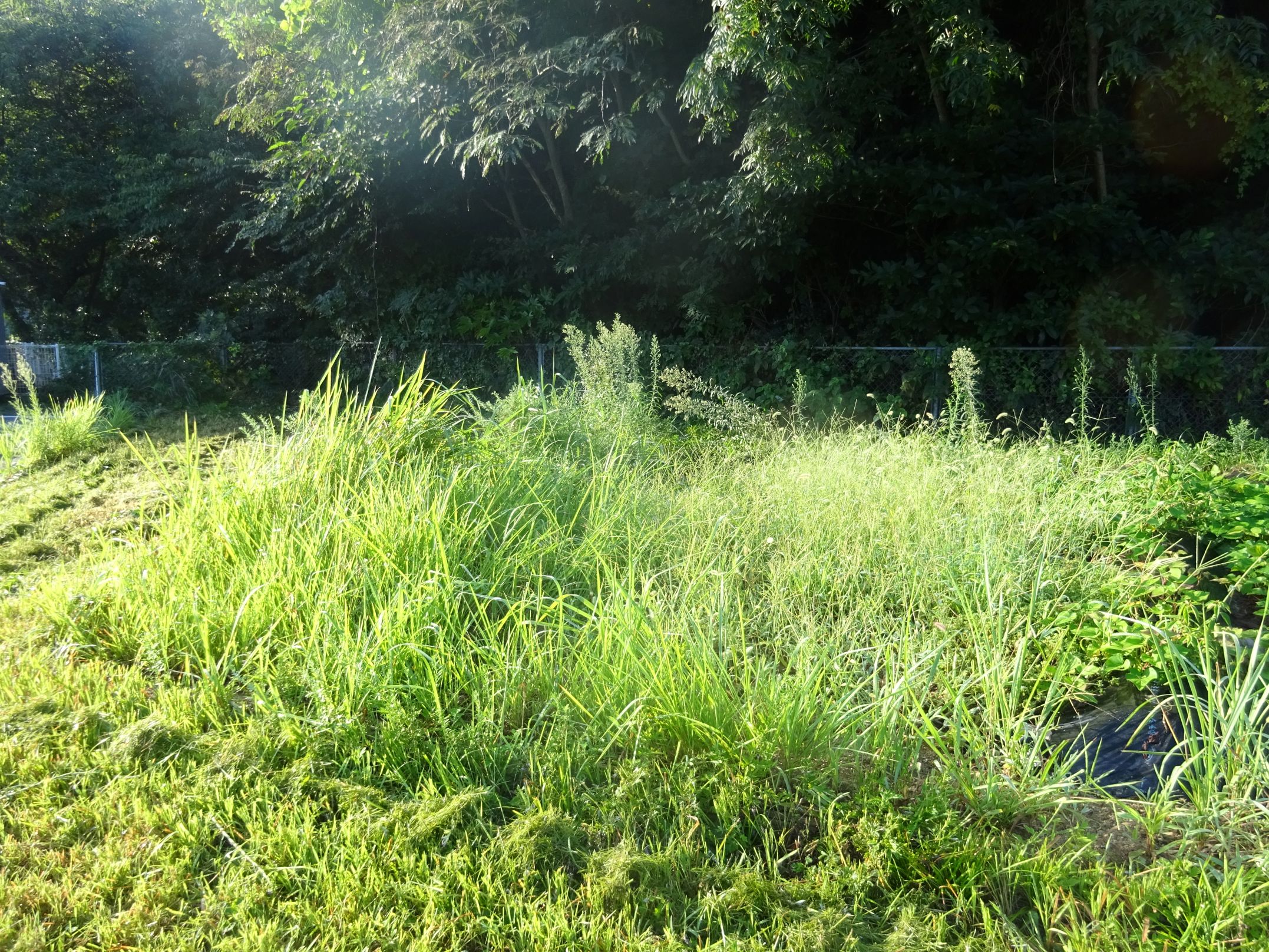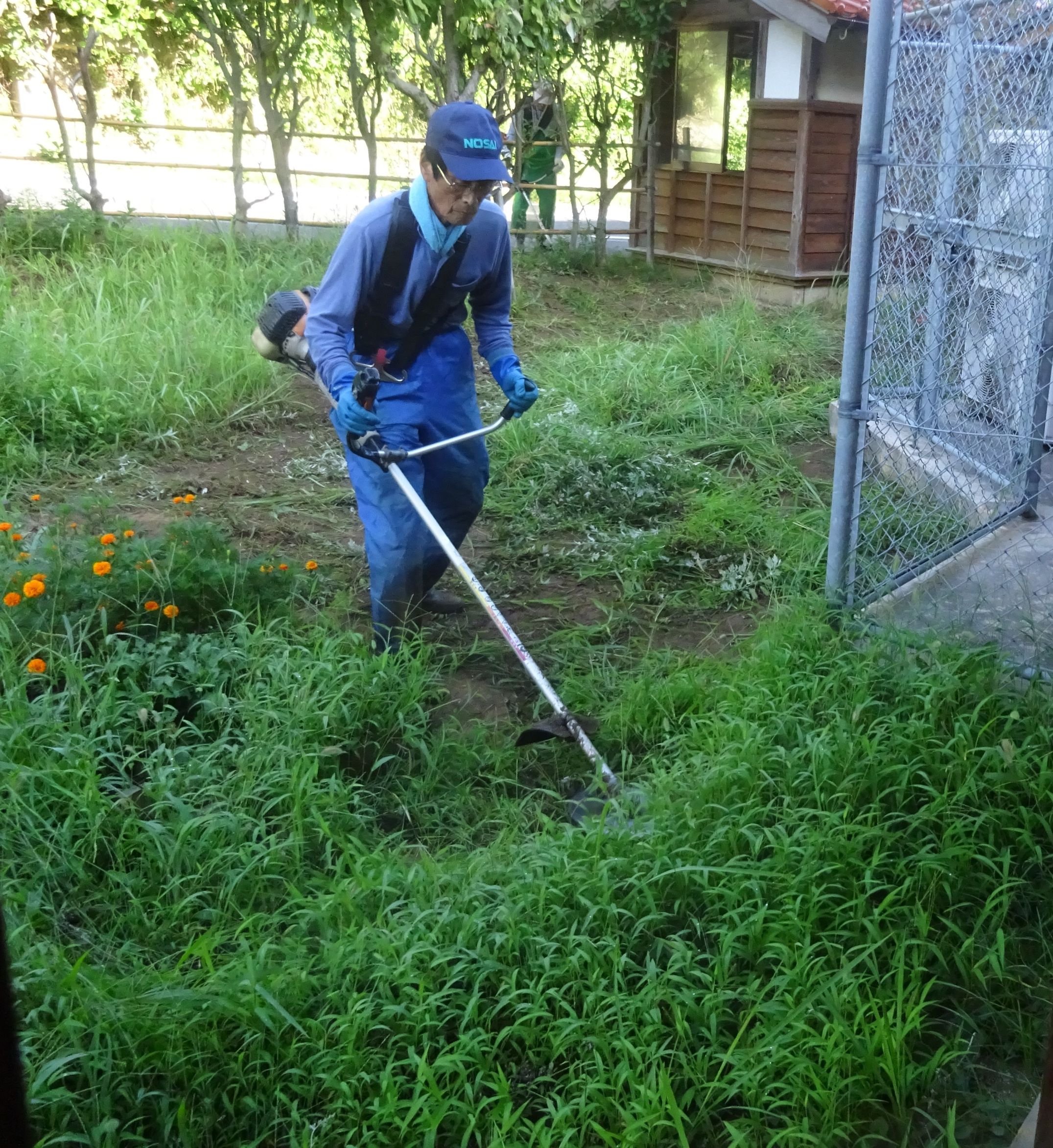 夏の間に伸びた草を刈るのは大変な作業です
