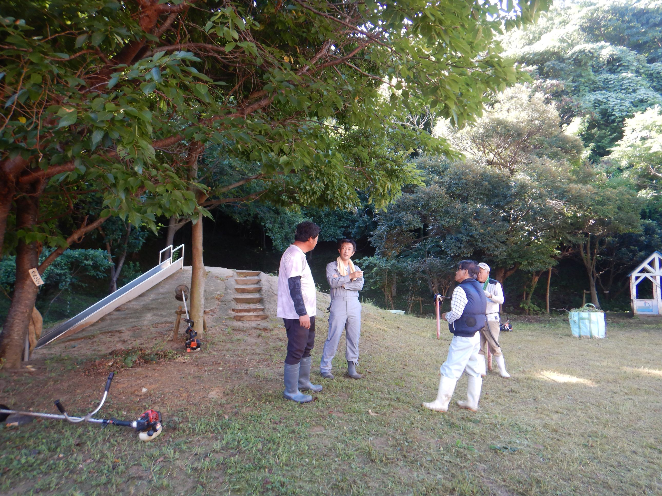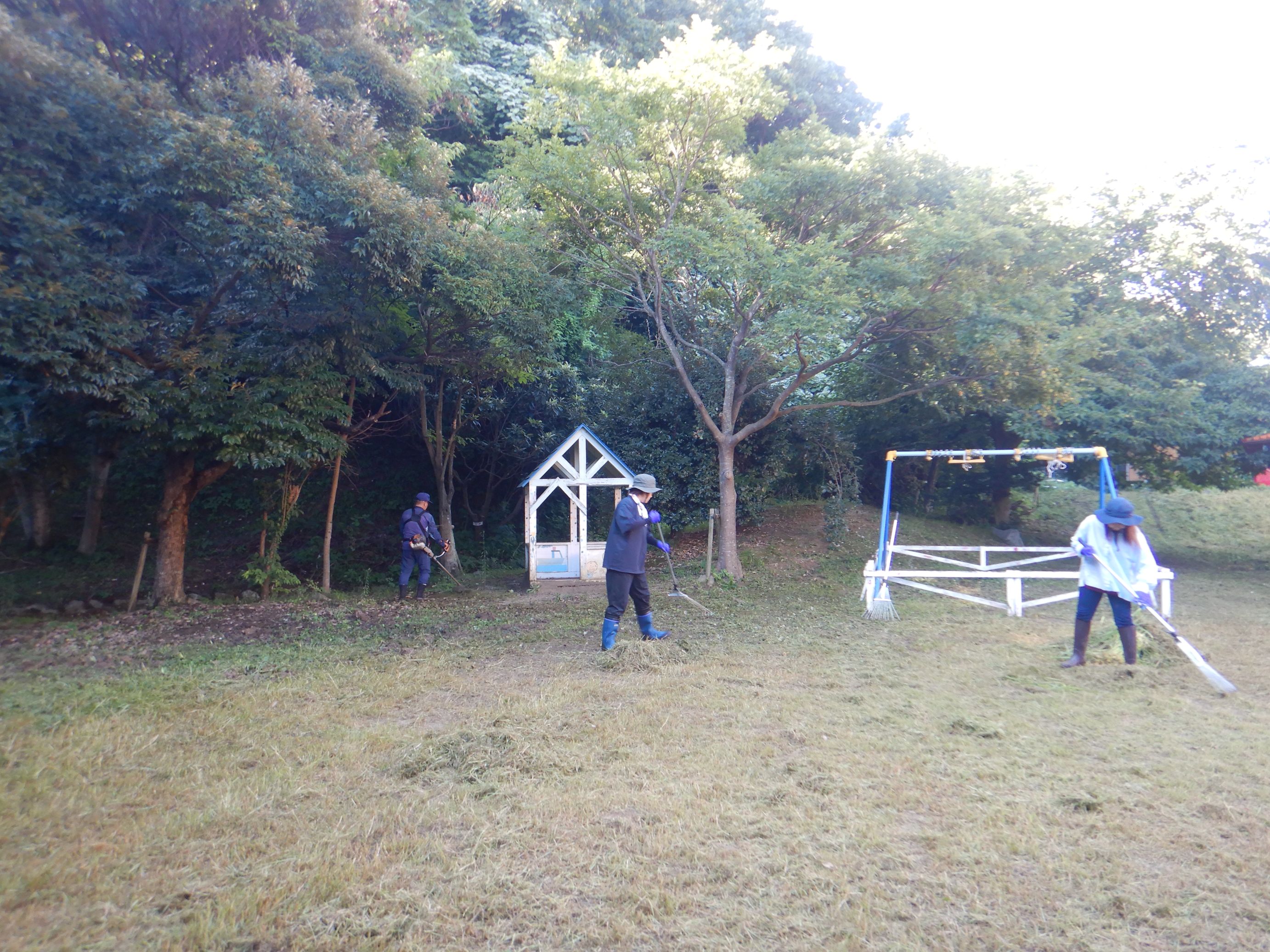 まだまだ残暑厳しい中でしたが、皆さんが本当に熱心に作業をして下さったので、とてもきれいになり、感謝の気持ちでいっぱいです。きれいになった所庭でこども達と思い切り身体を動かして遊びたいと思います。