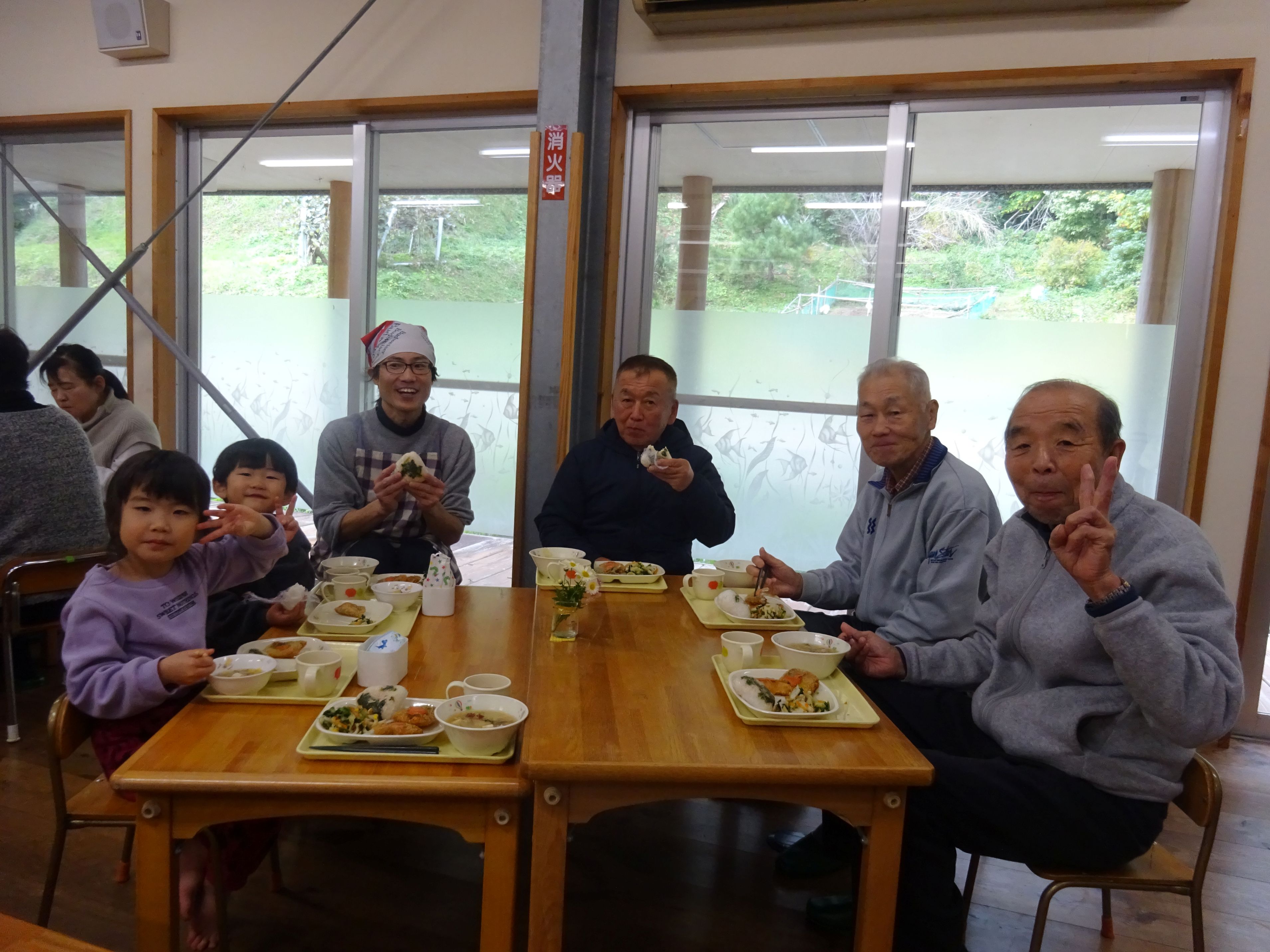 収穫したさつま芋や大根菜を使った給食を一緒に食べて、更に仲良しになりました。