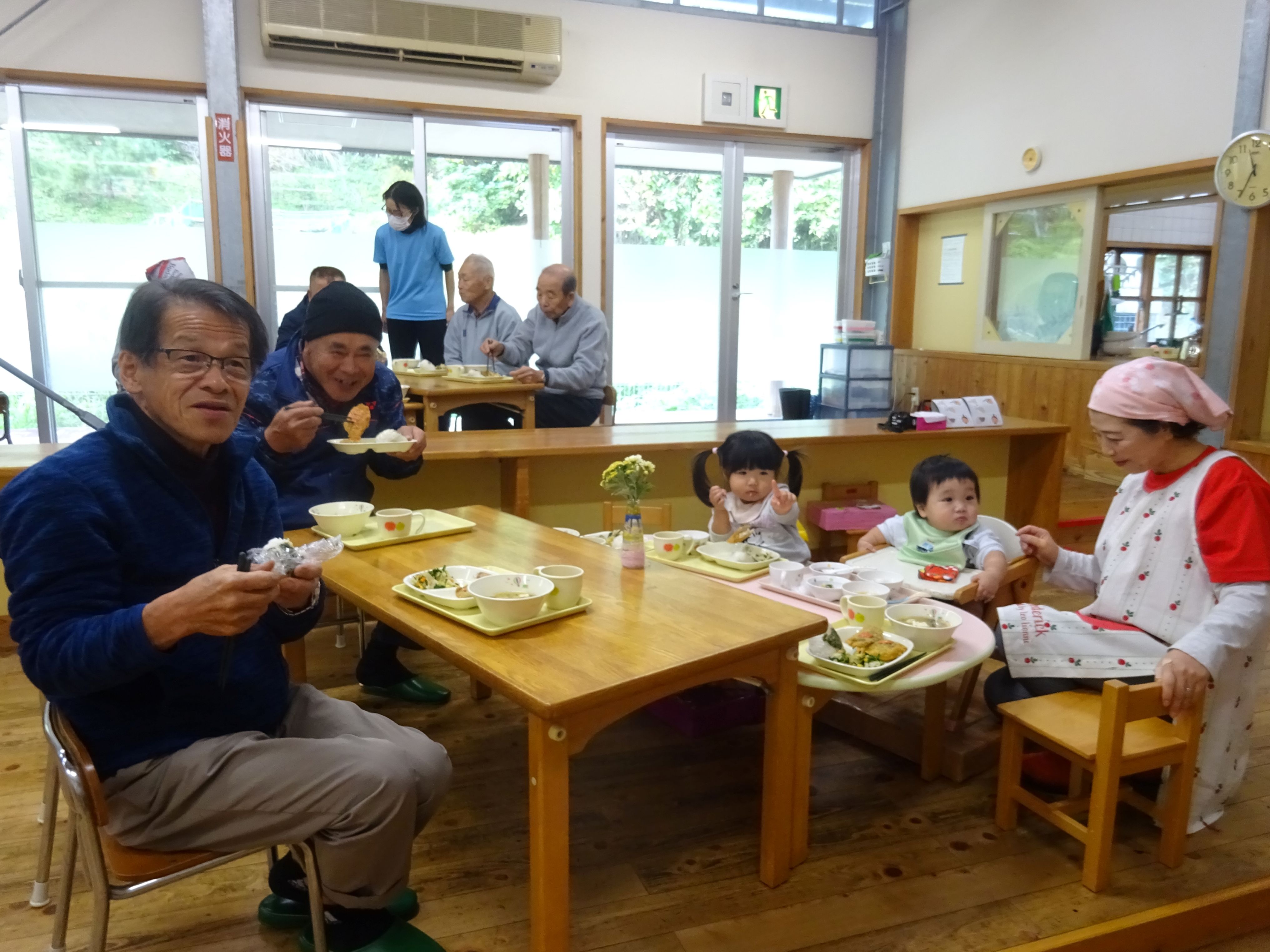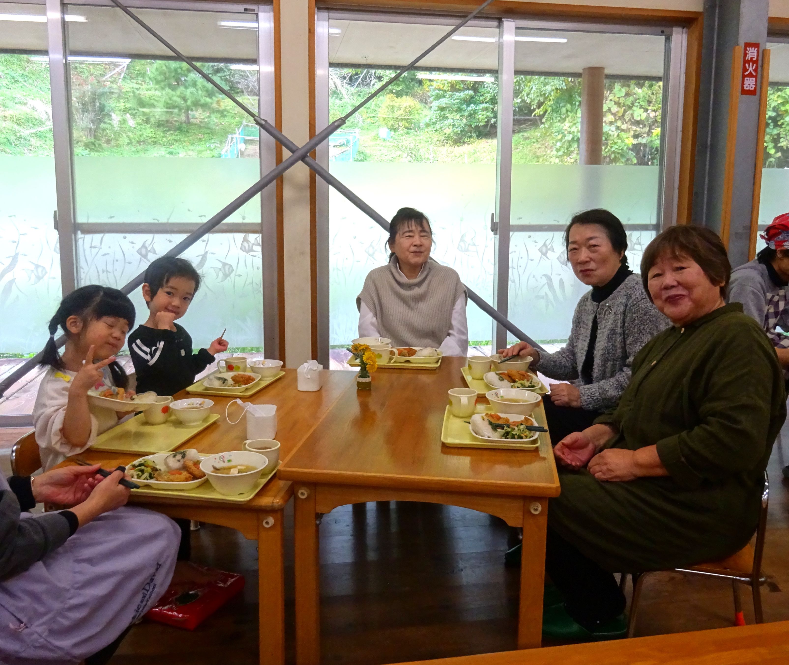 ランチルームに移動し、みんなで給食を食べます