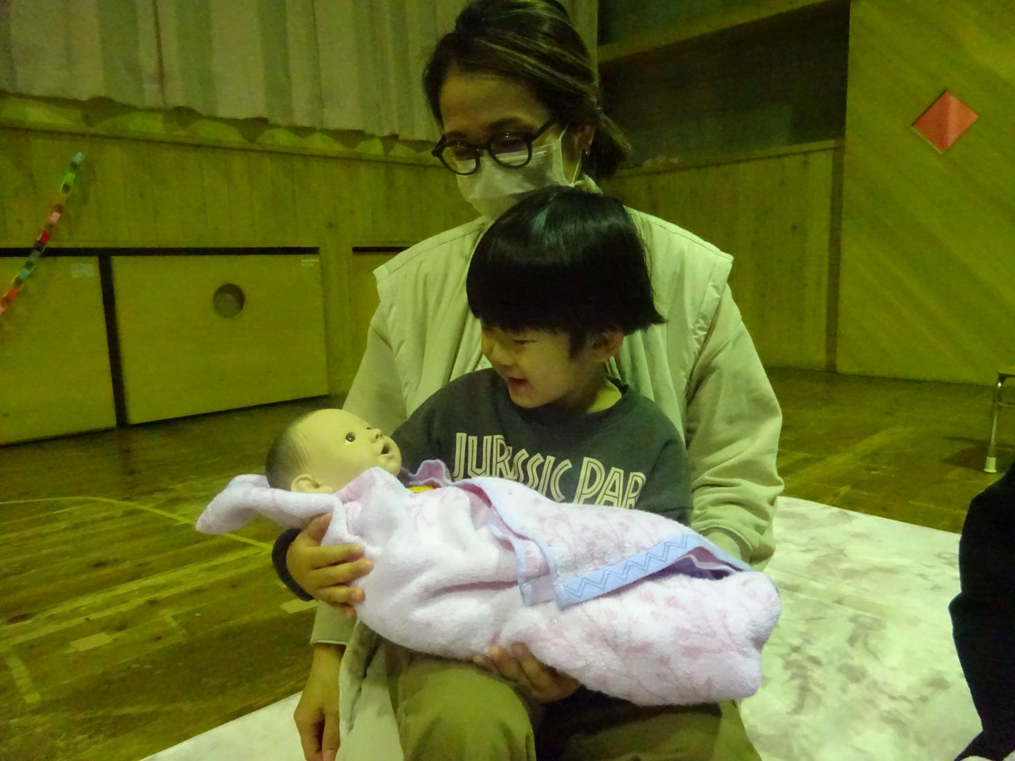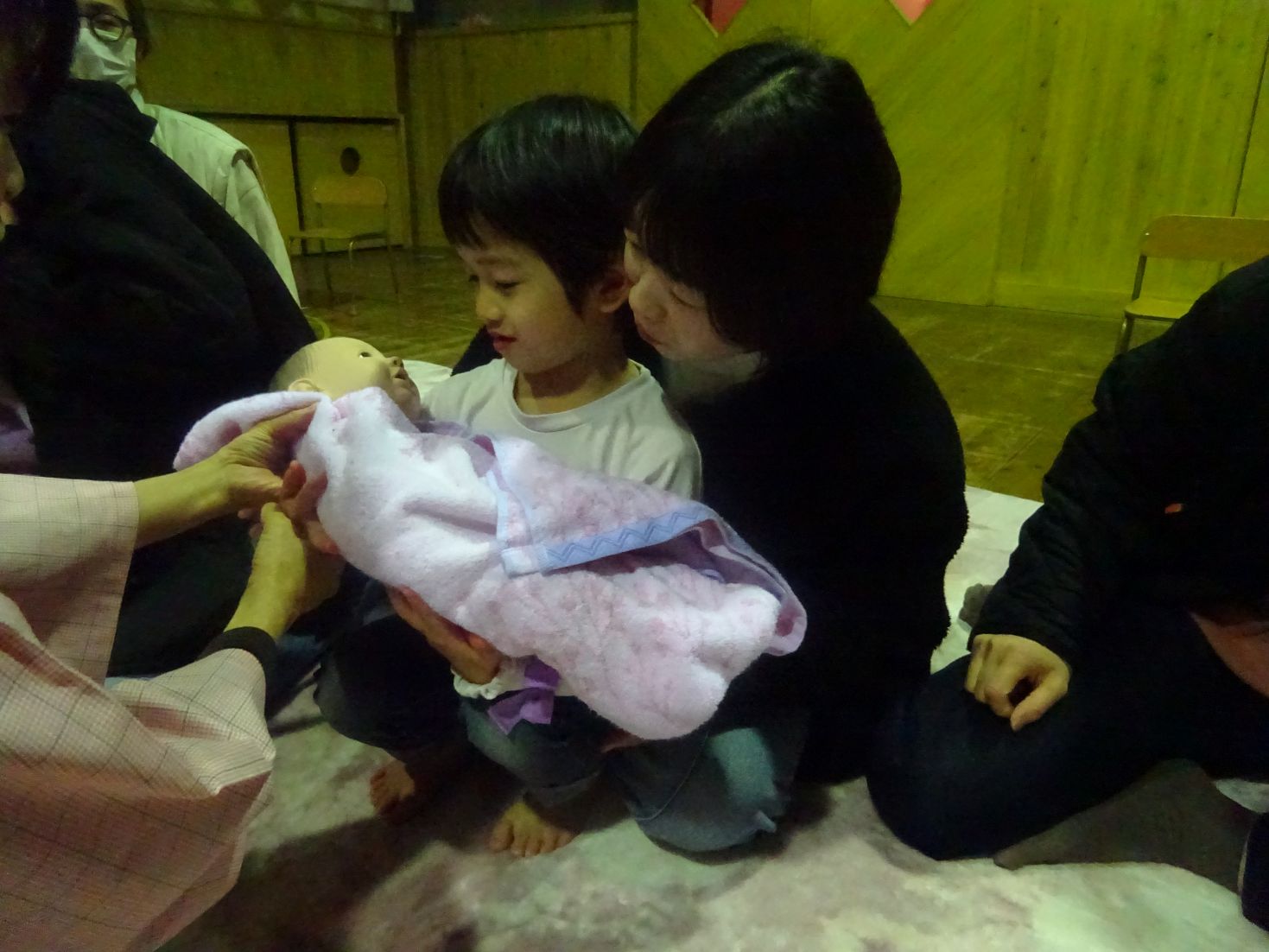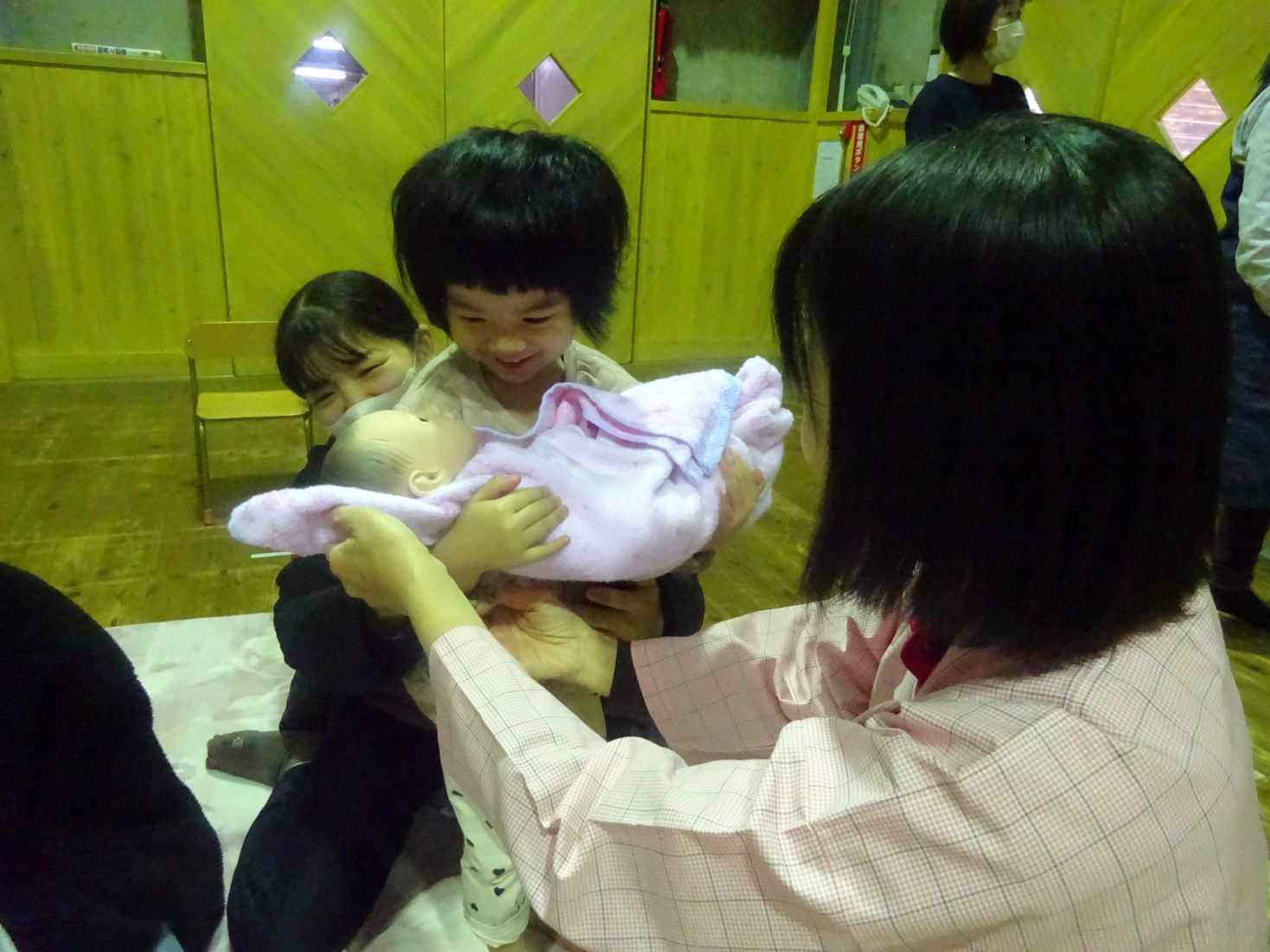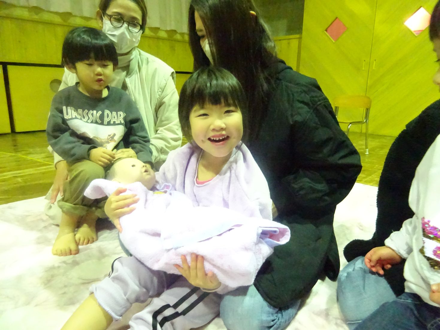 そして『こっころバースデー講座』にも親子で参加して頂きました。この講座では赤ちゃんの心臓の音(録音)や友達の心臓の音(4歳児のこども達)、助産師さんによる出産の感動を再現した劇などを通して“命の尊さ”や“家族の繋がり”を感じることができた事と思います。こども達の心にもきっと届いたでしょう。島根県助産師会の講師先生方には大変お世話になりました。ありがとうございまいました。