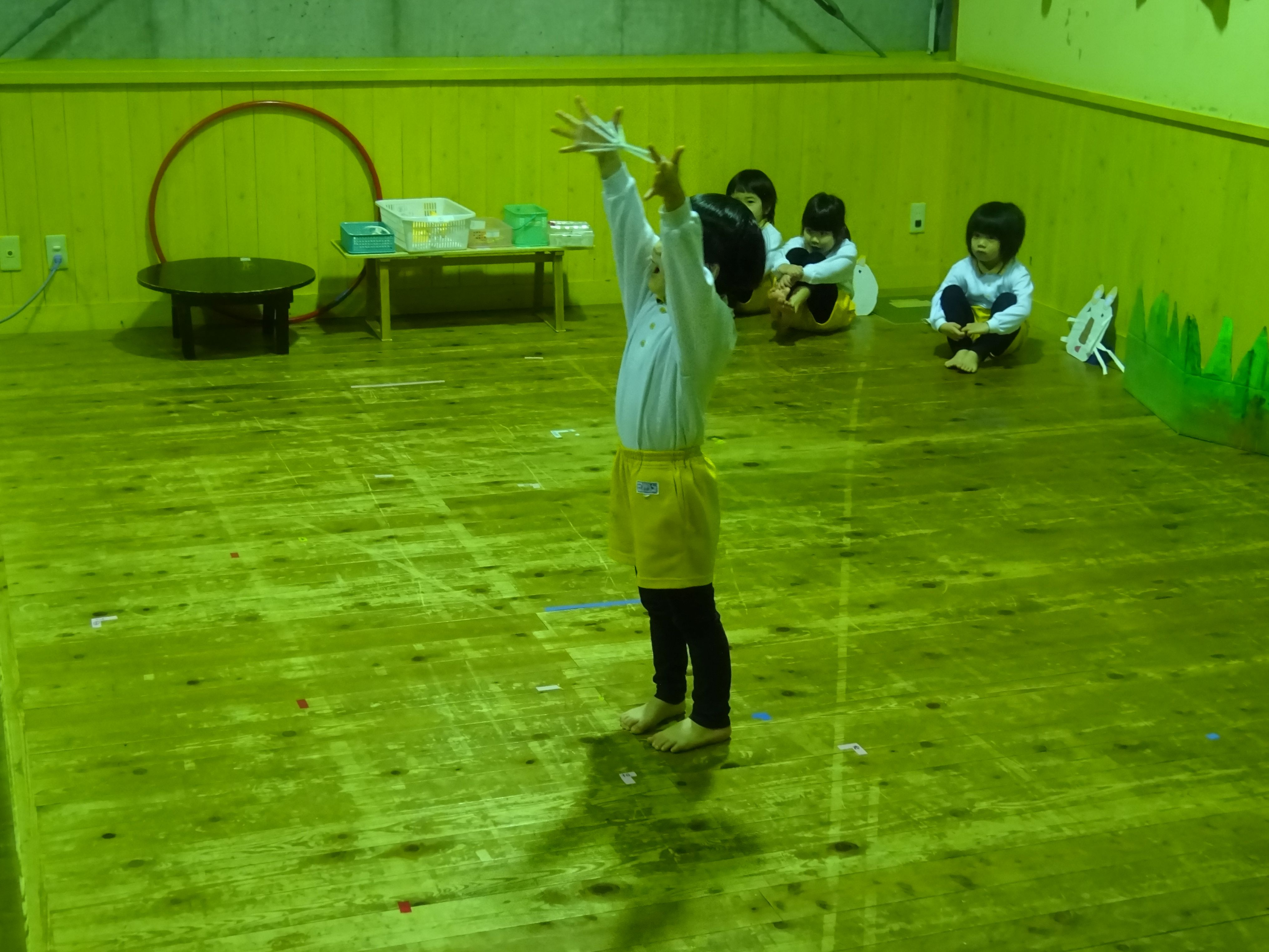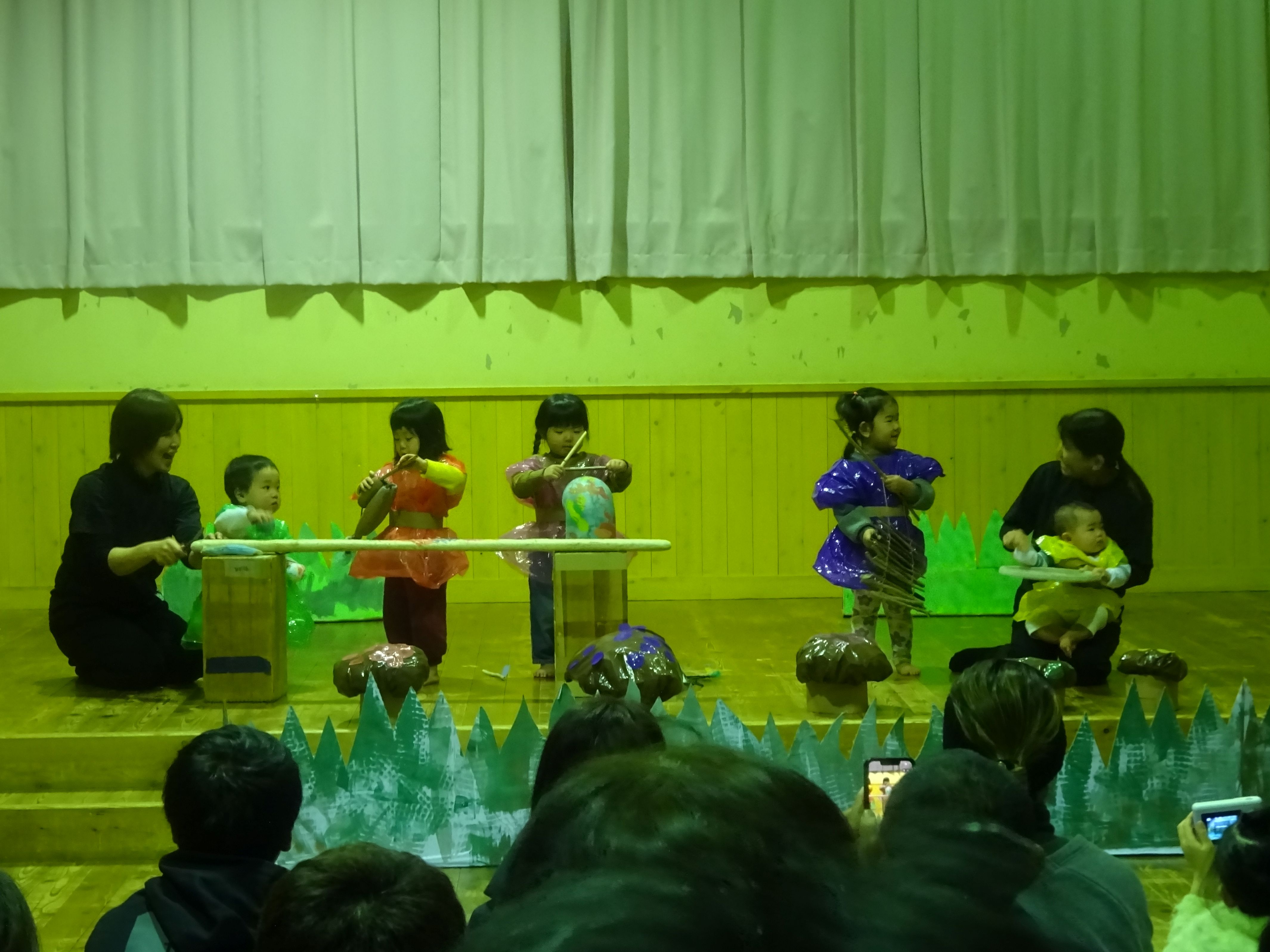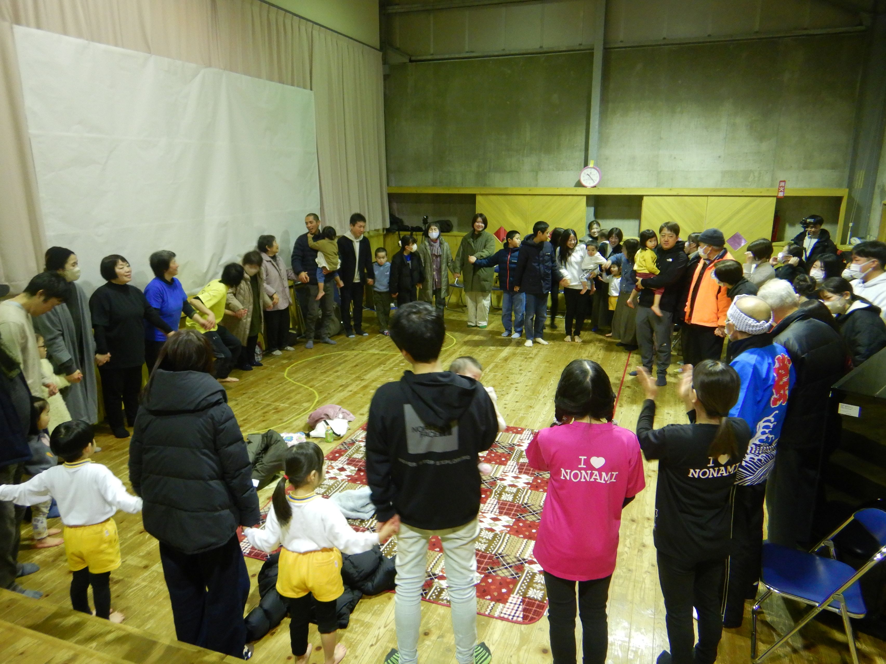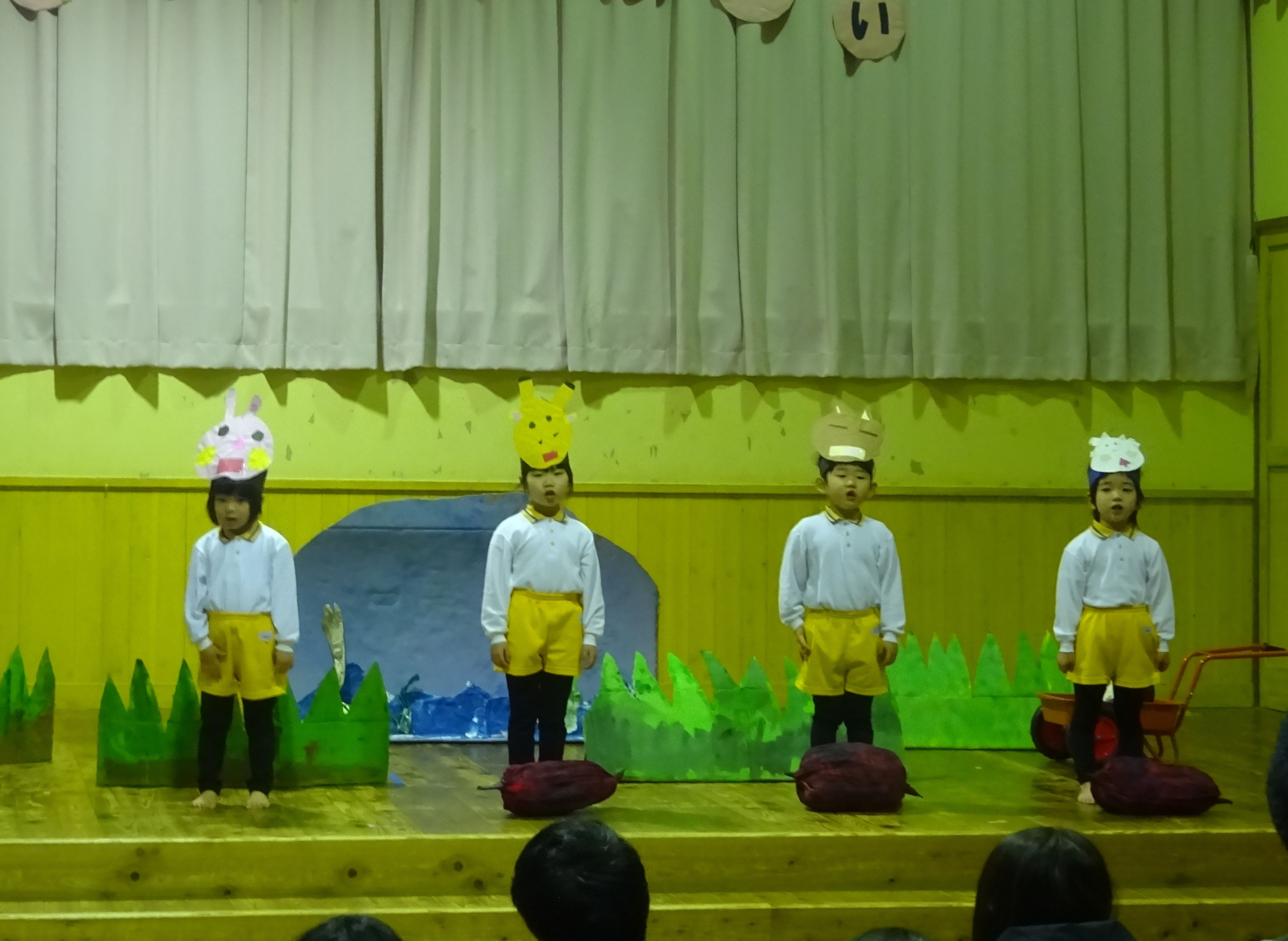 朝から冷たいみぞれが降る中でしたが、生活発表会を行いました。一人の欠席もなく、全員が元気に参加できたことが何より嬉しいことでした。こども達は本当に堂々と舞台に立ち、練習では見せたことのないようなアドリブも飛び出して職員を驚かせてくれました。オープニングの『大漁節』からフィナーレまで、一人一人が持っている力、全てを出し切った素敵な発表会になりました。フィナーレでは今までこども達に沢山の愛情を注ぎ、様々なことを教えてくださった地域の方々との思い出をスライドショーで振り返りました。スライドショーの後は地域講師さんにもステージに上がっていただき、一緒にふれあい歌を楽しみました。最後は会場の全員で輪になって『のなみほいくしょのうた』を歌い、野波らしい温かな雰囲気の中で発表会を終えました。