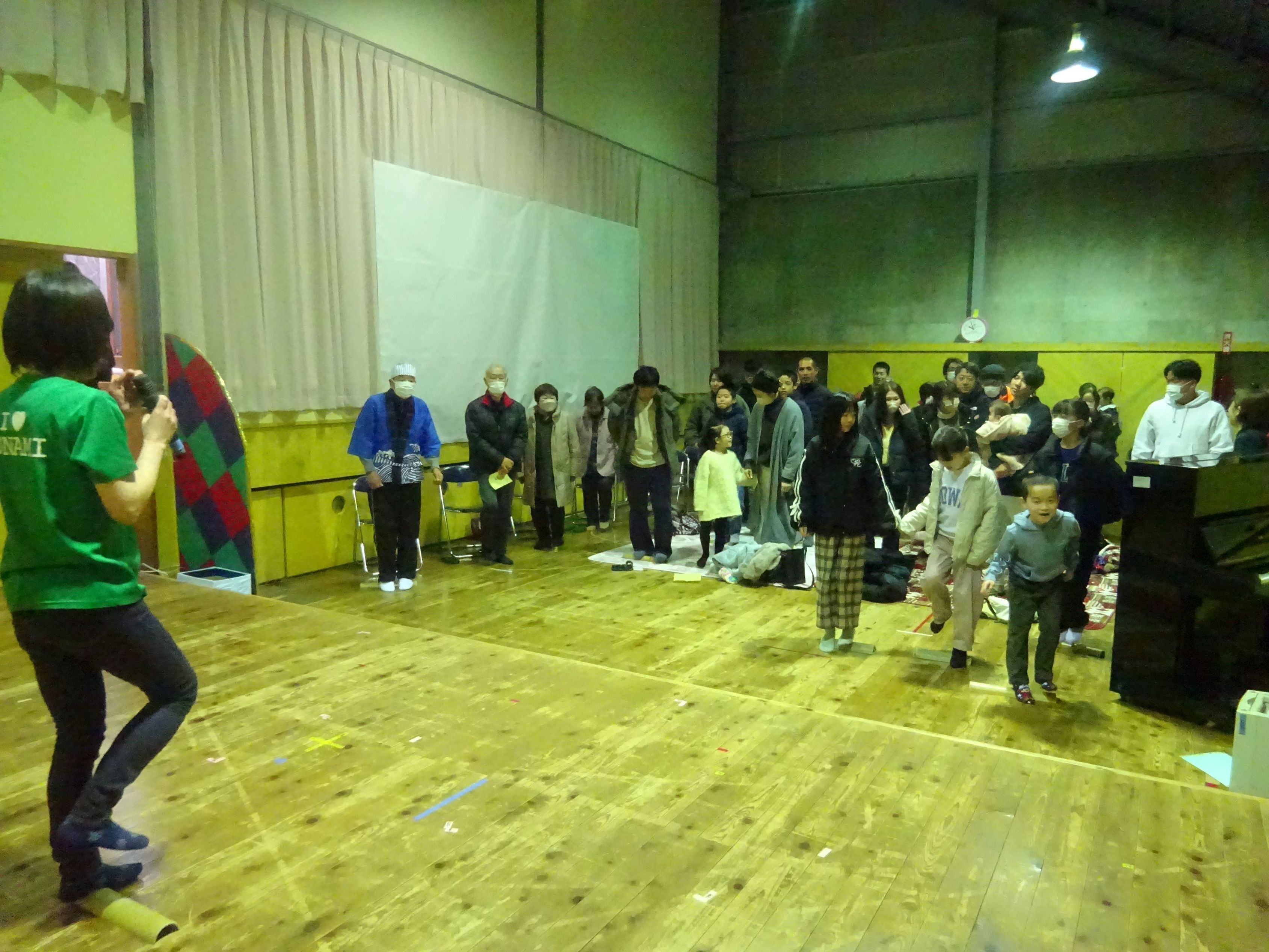 こども達はちょっと休憩。会場のみなさんで Let’sチャレンジ わくわく集会
