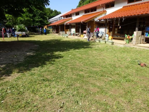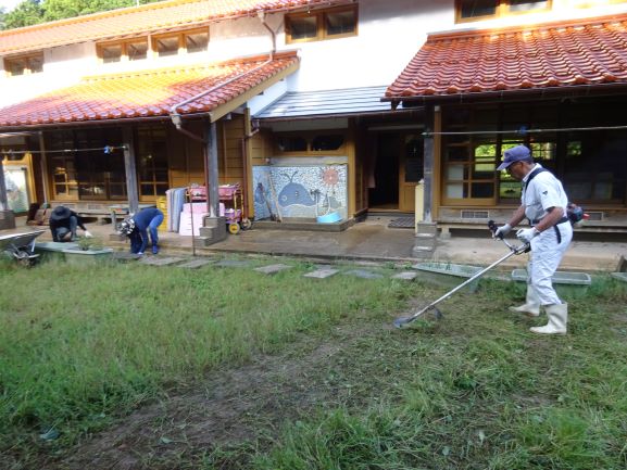 保護者の皆様と、小波社協の皆様、職員で奉仕作業、プールの解体をを行いました。今年は、例年以上に草の伸びが早く、作業も大変でしたが、皆様本当に熱心に作業をして下さり、作業前と同じ場所とは思えないほどきれいに作業していただきました。