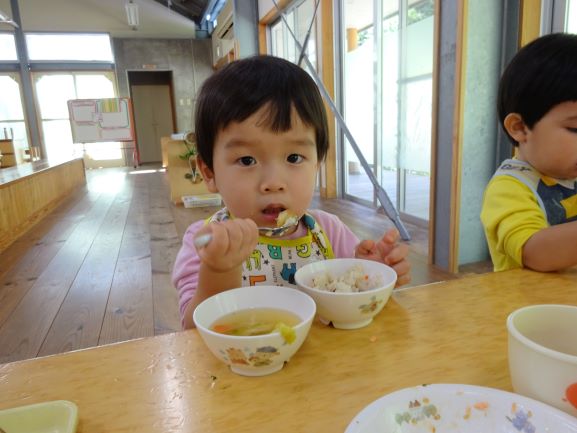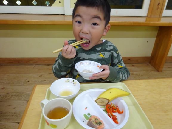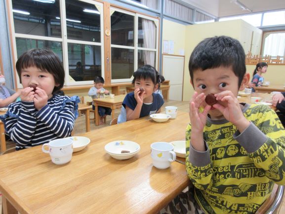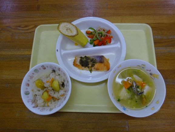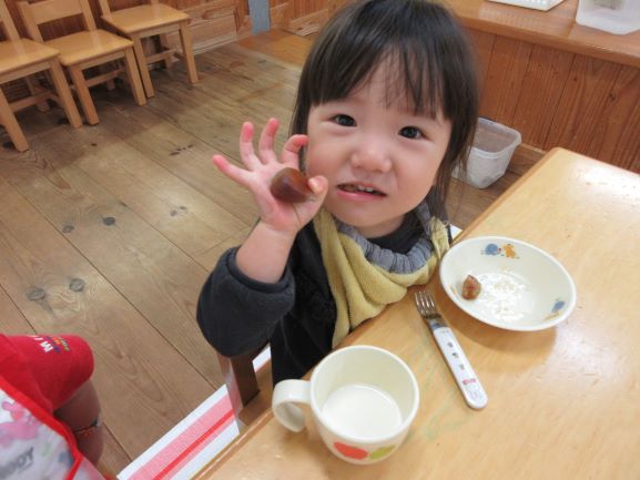 そして、今日栗おこわが給食に出てくると、「お家でも、栗ご飯食べるよ~」と教えてくれたり、「おいしい!」「栗が甘かったよ」と言っておかわりをしたり、たくさん食べてくれました。