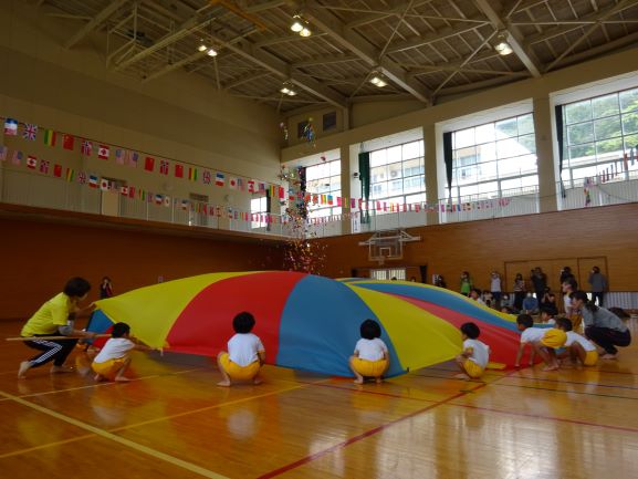 パラバルーン大きくふくらんだよ!みんなですると楽しいね!