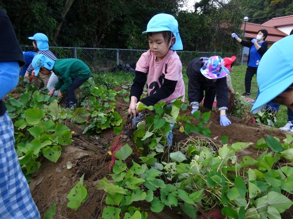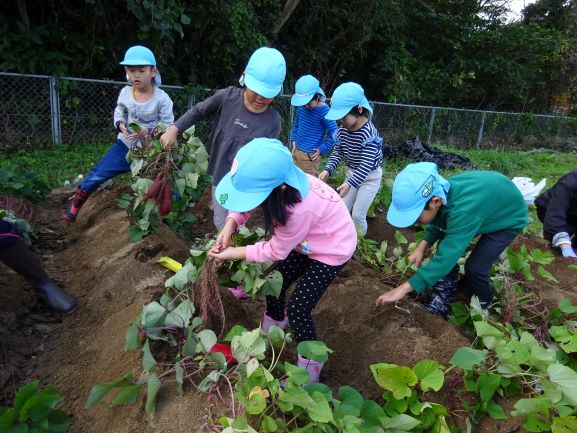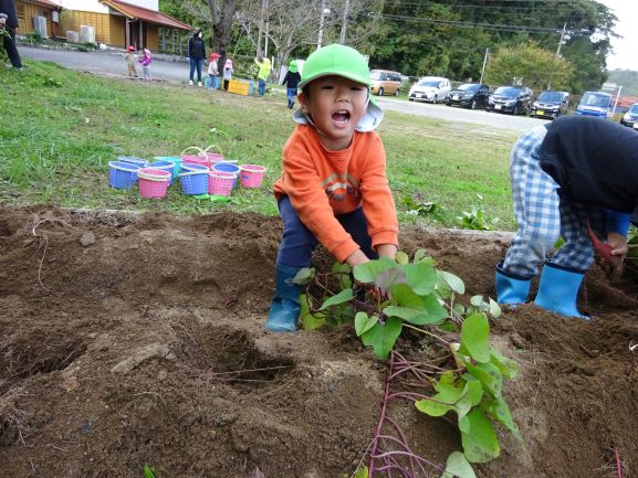 昨日までの雨が上がり、みんなが楽しみにしていたお芋掘りを無事に行うことができました。